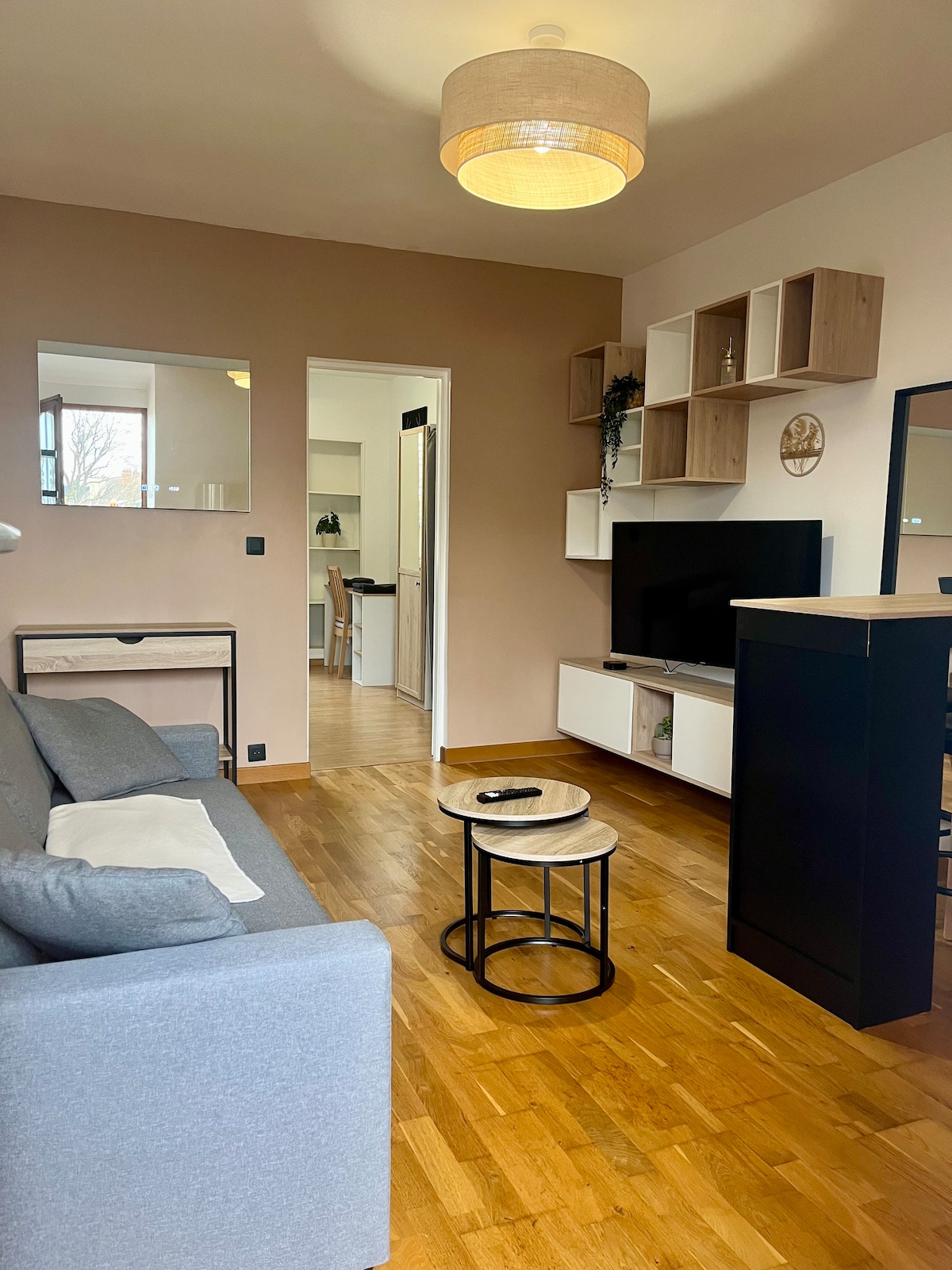 Voici le petit frère de l’appartement « bienvenue chez vous! » après de long mois de travaux il est enfin disponible ! Appartement en rez de chaussée avec entrée indépendante. Vous y trouverez tout le confort moderne, cuisine équipée, internet, tv 138 cm dans le salon, machine à laver, écran cinéma de 200 cm avec Netflix, Amazon prime dans la chambre, un espace extérieur privé (en cours d’aménagement), une place de parking le tout à 15 min À PIEDS du plein centre ville ! WIFI