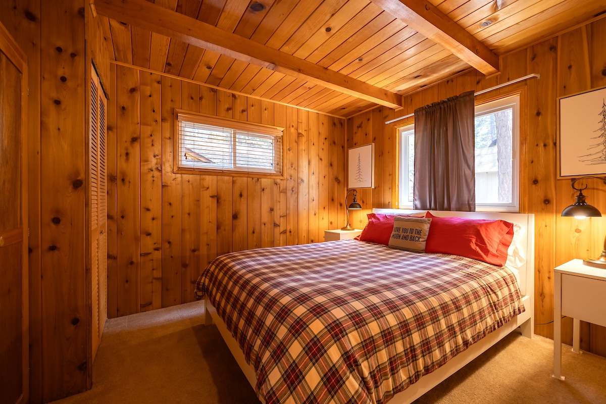 Welcome to Pansize, a cozy rustic cabin with foosball, arcade games, board games, plus a guitar and piano. Enjoy music or the soothing sounds of nature. Two bedrooms with three beds. Spacious hillside patio deck for BBQ, bird watching, and stargazing. Nestled in upper Moonridge, minutes from slopes, lakes, hiking, and more. Ideal for a peaceful getaway with a fireplace. Follow us on IG: @pansize_cabin