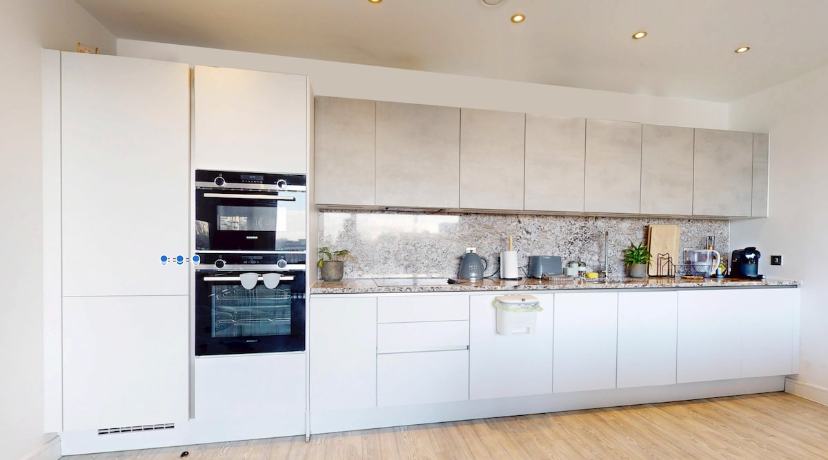 Spacious 2 double bedrooms located in a park by a canal, with a large sunny balcony and great views of Canary Wharf. Completely renovated in 2025. Only a few underground stops from Central London and a cycle ride or an underground stop from the Olympic Stadium and Westfield in Stratford. Parking nearby. Everything you need for young children provided. Great local pubs and restaurants. Local food shops 5-minute walk. Fully stocked kitchen. Bluetooth speaker and smart TV. High-speed internet.