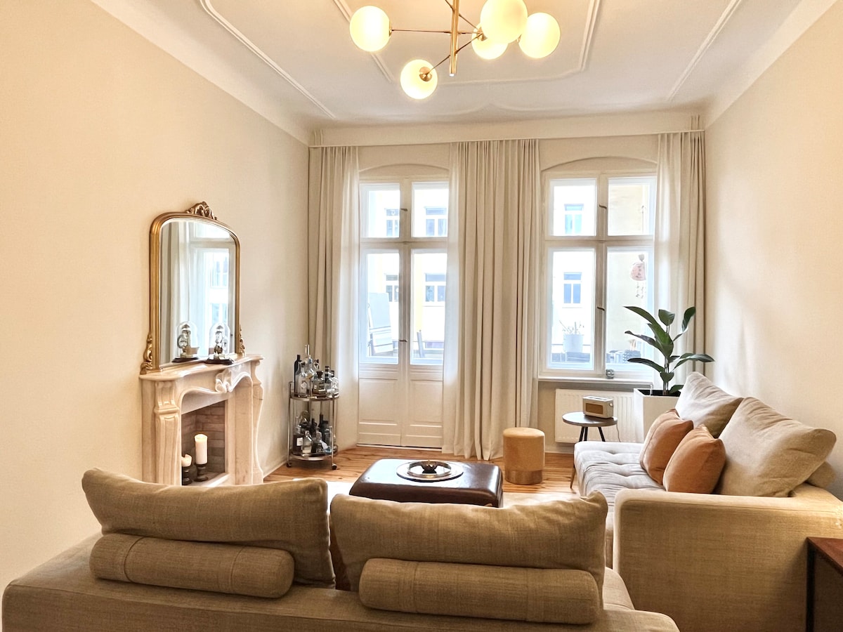 프리드리히스하인에 위치한 142평방미터(1530피트²)의 드림 앨트바우 아파트 전체. 따뜻한 난방, 오크 바닥, 오리지널 빈티지-DDR 스타일, 시바리용 6개의 서스펜션 포인트, 요가 매트, 오리지널 예술 작품으로 장식, 와이파이, 식기 세척, 커피 모카! 파티 절대 금지, 이벤트 금지, 시끄러운 음악 금지! 사진/동영상 촬영을 위해 예약하지 마세요. 저에게 연락하시면 다른 거래를 해야 합니다.