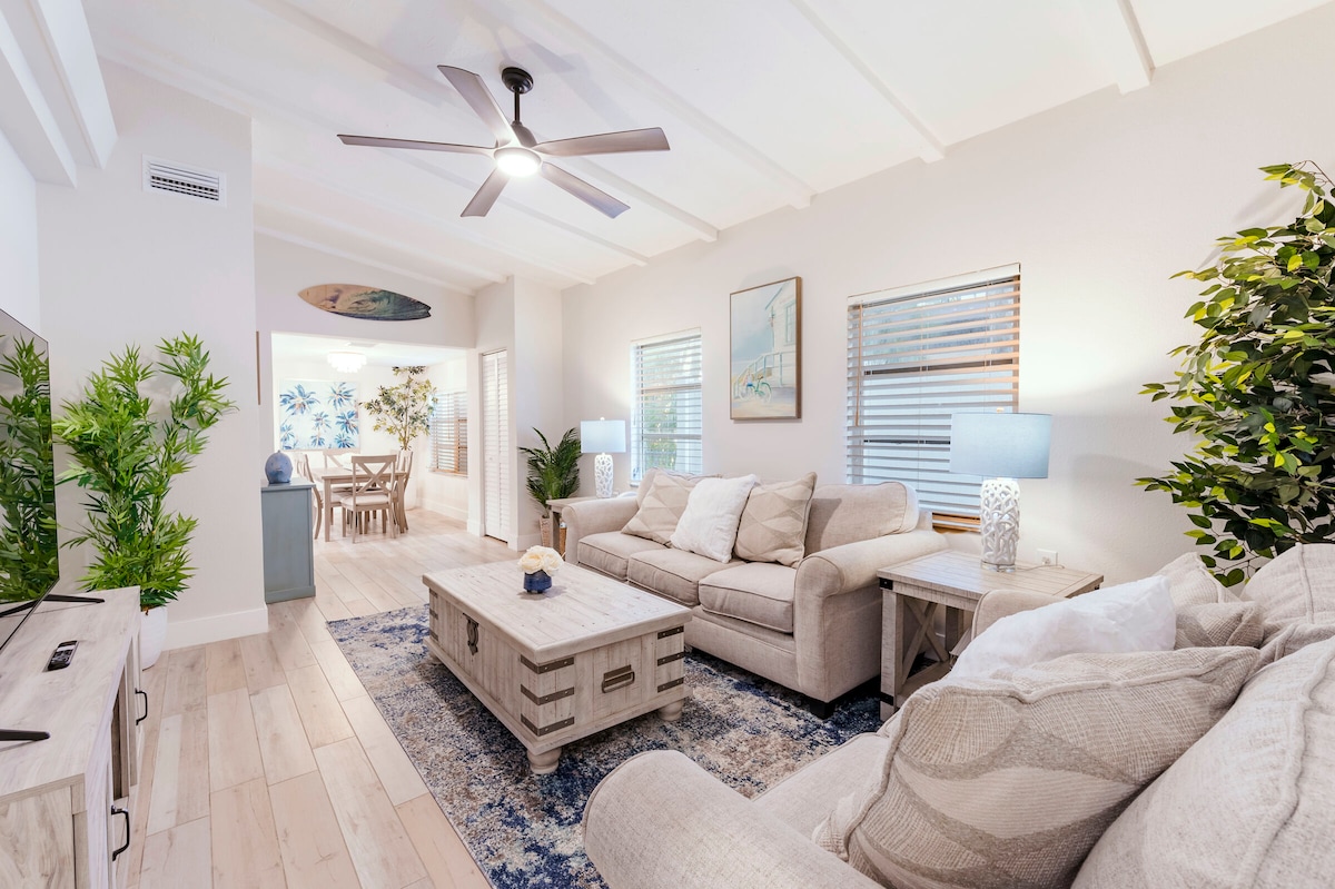 Beach getaway pool, spa, mini golf, walk to beach