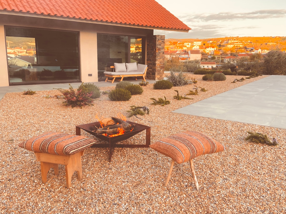 Quarto da Aldeia - Suite Privada em Vale de Cântaros Enoturismo - A vista deslumbrante sobre a aldeia, os telhados antigos e as paredes velhas de pedra, os montes de giestas, estevas e carquejas, a vinha armada ao lado e as copas verdes das oliveiras oferecem o cenário ideal para esta experiência de enoturismo única.