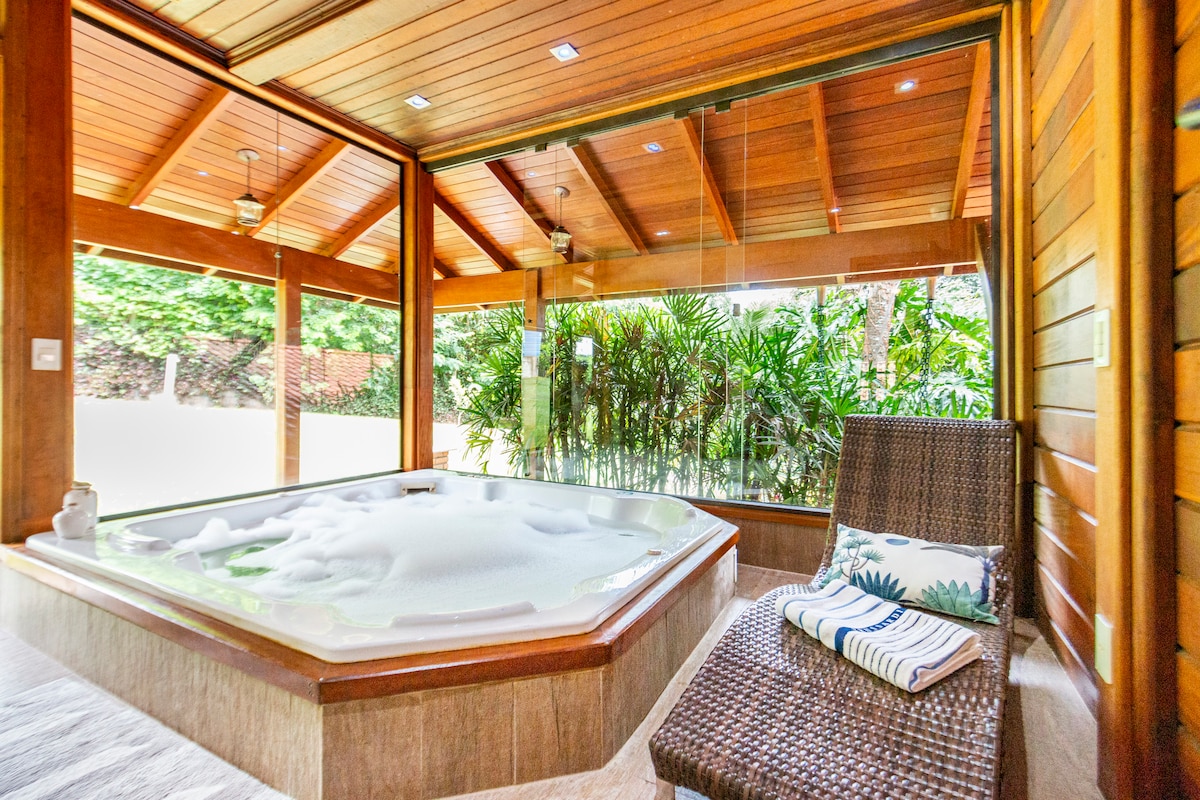 이 넓은 별장은 친구와 가족을 위해 지어졌습니다. 모든 것이 나무로 만들어진 이 아늑한 집은 평화롭고 즐거운 주말을 보내기에 이상적입니다. 대서양 열대우림 한가운데에 위치하고 있으며, 벽난로, 난방 시설, 스파 등이 갖춰져 있고, 가을과 겨울철을 위한 시설이 완비되어 있습니다. 또한 경비원과 보안 시설이 있는 콘도미니엄에 위치하고 있으며, 9홀 골프 코스가 있고, 뒤뜰에서 스포츠를 즐길 수 있습니다.
