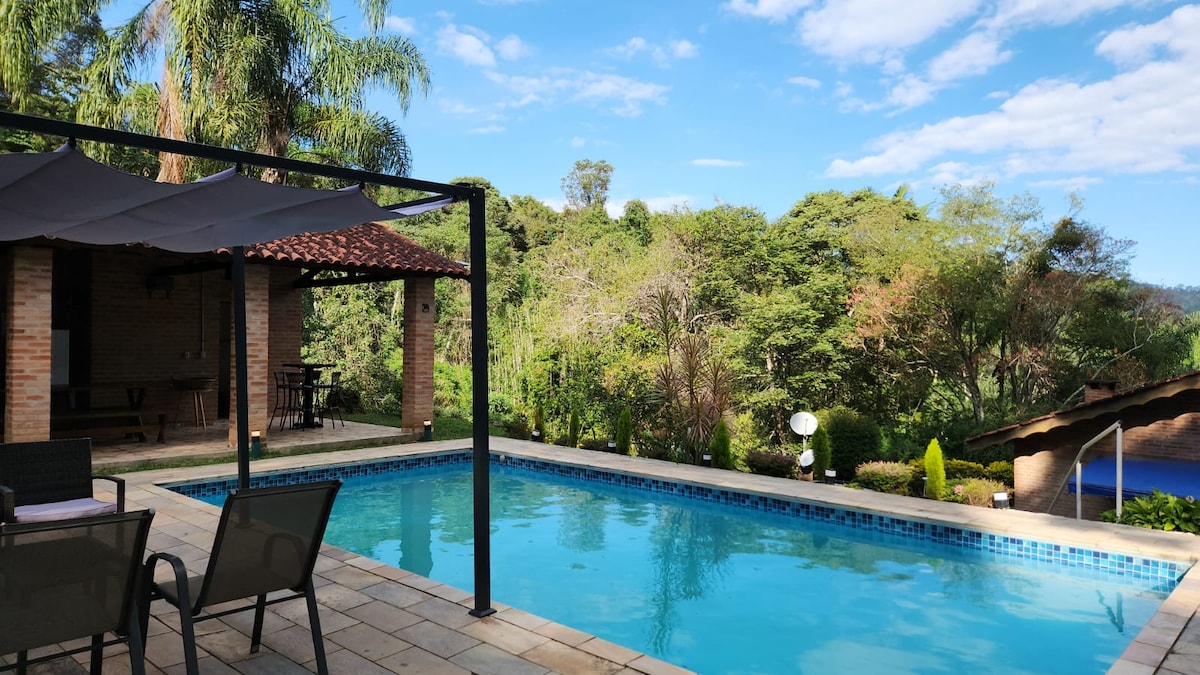 현대적인 스타일의 산악 주택으로 깨끗하고 편안하며 상파울루 중심지에서 1시간 거리에 있습니다. 좋은 건축물, 노스페이스, 이중 높이 발, 돌, 나무, 유리로 지어졌습니다. 대서양 숲 보호구역에 위치한 42,000㎡의 부지로 깨끗한 물줄, 샤워 시설, 천연 수영장이 있습니다. 완전한 평온함과 프라이버시를 보장하는 아늑한 분위기. 근처에 있어 주말에 안성맞춤입니다. 그리고 휴가와 연장된 휴가를 보내기에 좋습니다.