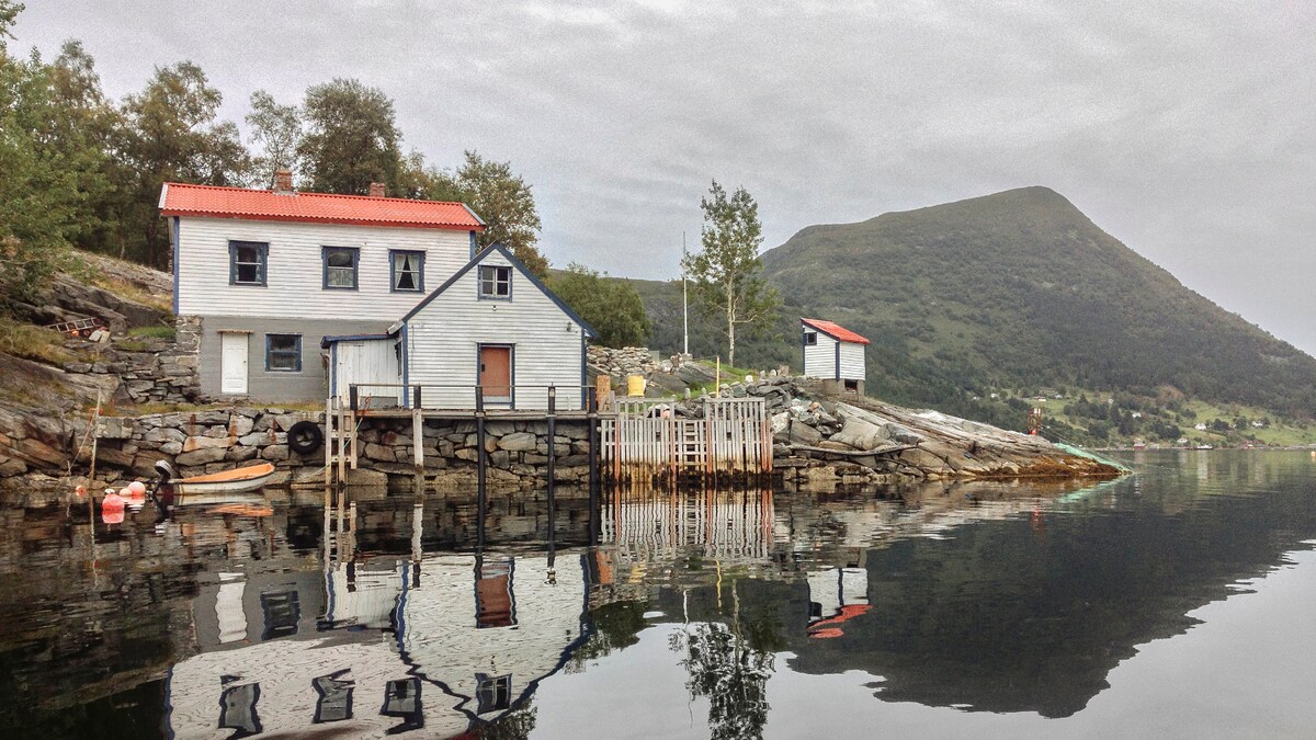 Slapp av på dette unike og rolige overnattingsstedet. Søt og fredelig hytte rett ved fjorden. En eldre hytte med oppdatert bad. Hytten har oppvarmet vann, dusj og strøm, i tillegg til et lite kjøkken og peis. Det er en sovesofa med madrass som passer bra for 2 personer. Perfekt for et romantisk opphold for to eller for litt fred og ro alene. Muligheter for fiske og bading. Følg med på cruiseskipene som går forbi, se etter niser i fjorden, ta deg en tur opp på fjellet og nyt naturen.