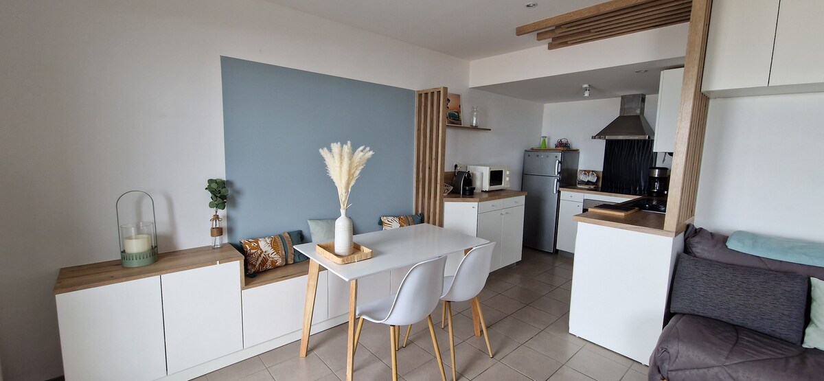 Superbe appartement de 80 m2, au centre du remblai des Sables d'Olonne. Cet appartement comprend une cuisine tout équipée avec lave vaisselle, salon/salle a manger, 2 chambres, salle de bain et WC + balcon de 8m2 avec vue sur l'océan. Équipé également d’un lave linge et d’un sèche linge. Garage privé et fermé a disposition.,logement pour 4 /5 personnes maximum , draps et serviettes (30€pour 2 lits +10€ pour lit supplémentaire 2 lits en 160 Lit en 90 Forfait ménage sur demande 50€