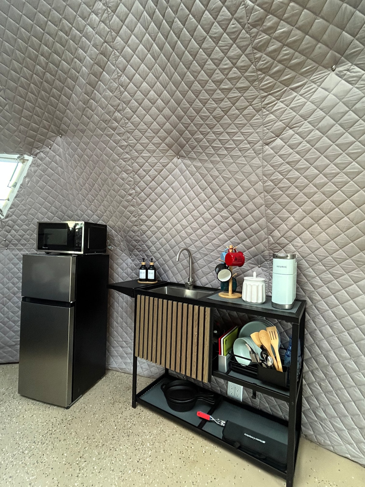 Escape to the vast Chihuahuan Desert, where this spaceship-themed dome promises an unforgettable retreat. Located near Big Bend National Park, this stay boasts some of the darkest skies in the U.S., making it a stargazer’s paradise. You'll find a comfortable queen-sized bed and bathroom with a shower. The kitchenette includes a fridge, microwave, and coffee maker. Whether enjoying morning coffee or stargazing from bed, the space offers a unique escape. Perfect for couples or solo adventurers!