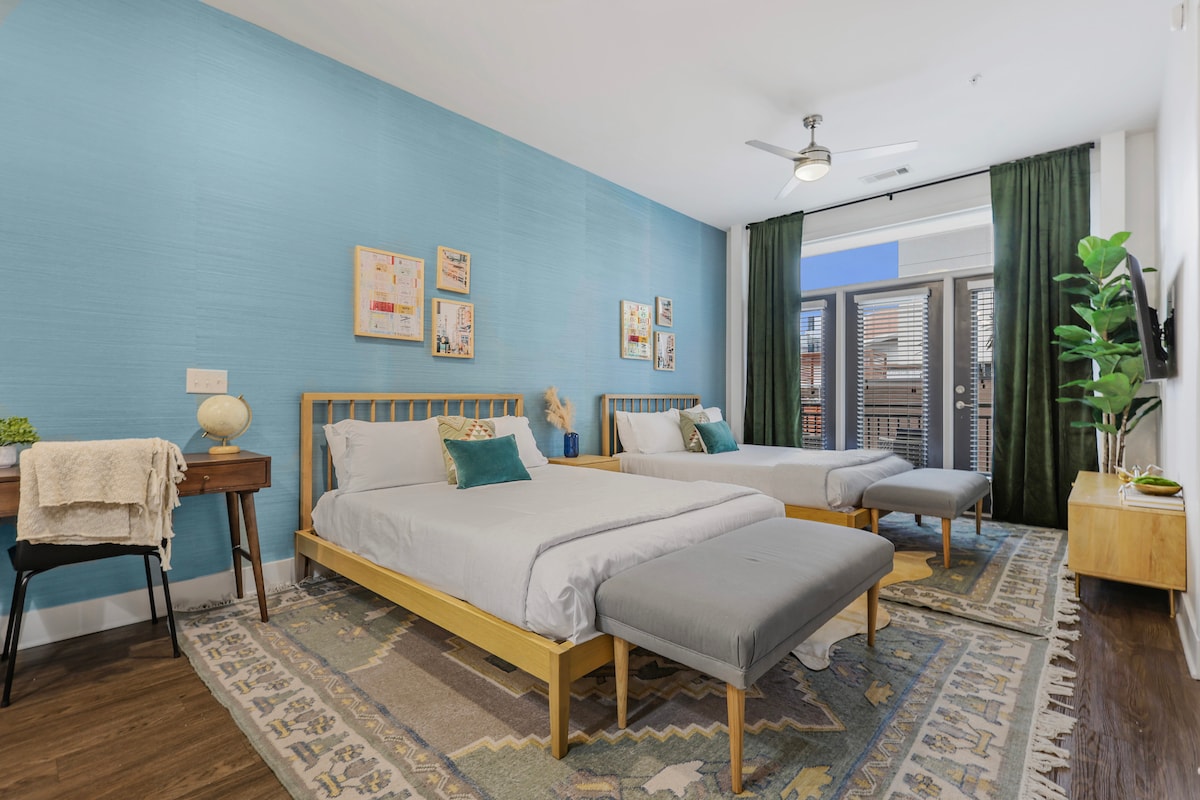 내슈빌 중심가에서 파티를 즐길 준비가 되셨나요? 대담한 블랙과 골드 1BR은 브로드웨이, 홀키톡 바, 걸치에서 몇 걸음 거리에 있습니다! 게임으로 경기를 예고하고, 50인치 TV 2대에서 좋아하는 프로그램을 스트리밍하고, 초고속 와이파이로 분위기를 즐겨보세요. 가장 인기 있는 바, 라이브 음악, 레스토랑까지 도보로 이동할 수 있습니다. 열정적인 주말, 생일 파티, 친구들과의 여행에 완벽한 숙소입니다. 활기 넘치는 곳에서 즐거운 시간을 보내고 추억을 만드세요! 허가번호: 2022059164