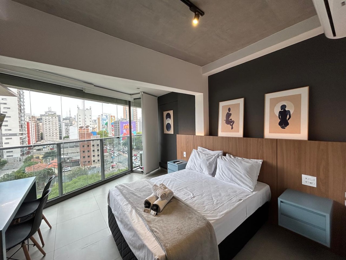Studio de Luxo na Rua Oscar Freire Moderno, sofisticado e completo, na rua mais famosa de São Paulo pelas lojas de luxo. Studio no 24º andar, de frente, com vista magnifica para Av Paulista. Bem equipado, com TV 55 polegadas, Wifi Internet Vivo Fibra 200, TV a cabo, Ar Condicionado silencioso, Cafeteira, Cooktop e Frigobar, Cortina black-out automatizada, Vaporizador de roupa portátil, Utensílios de cozinha, Secador de cabelo, Lençóis e Toalhas macios, sabonete e kit shampoo/condicionador.