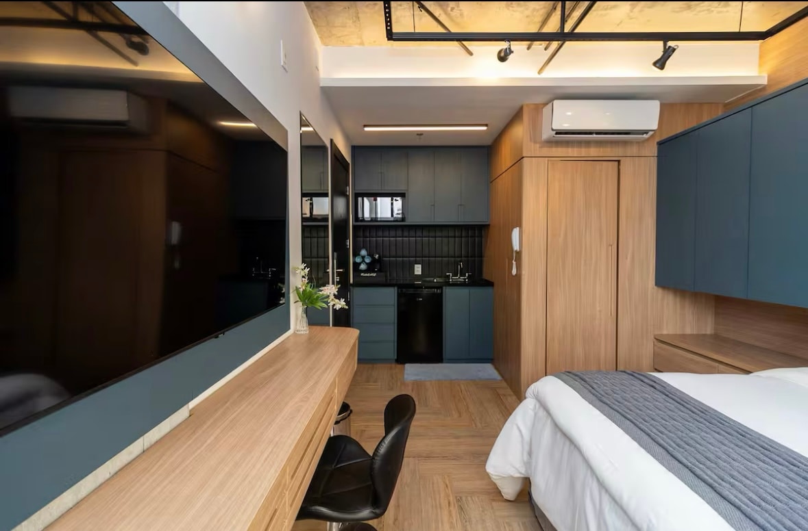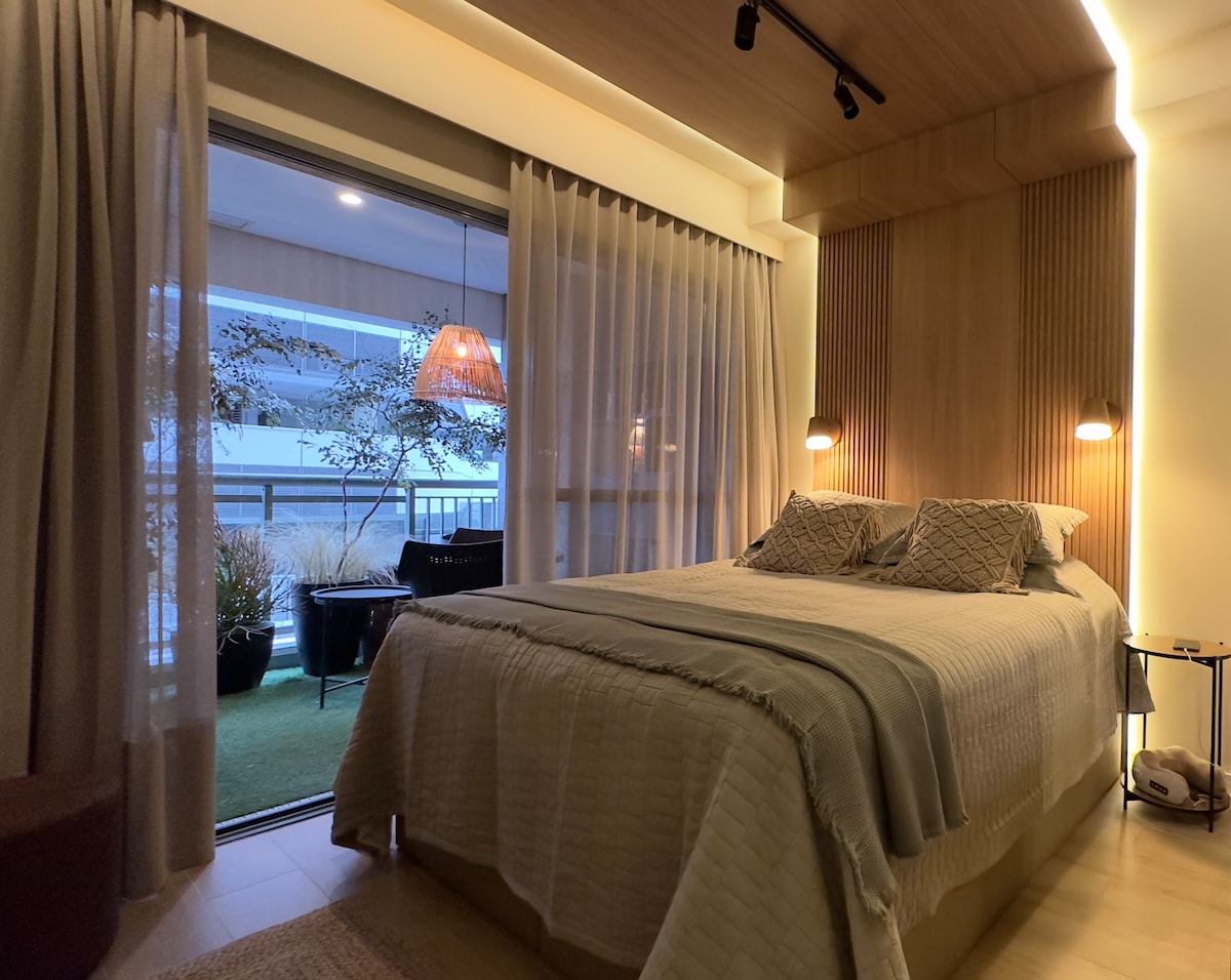 파라이소 지구의 새로운 스튜디오. 장식이 있고 아늑하고 세련된 이 숙소는 에어컨, 퀸사이즈 침대, 55인치 TV 등 다양한 시설을 갖추고 있어 상파울루에서의 머무는 동안 놀라운 경험을 할 수 있습니다. 도보로 5분 거리에 있습니다. 파울리스타, 샵. 파울리스타 안뜰, 그리고 3개의 지하철역. 에어프라이어, 전자레인지, 미니바, 주방용품, 샌드위치 메이커, 온수 샤워기 등이 완비된 스튜디오입니다…… **주소: Rua Mário Amaral, 311, Paraíso-SP.** 초고속 인터넷 이용 가능