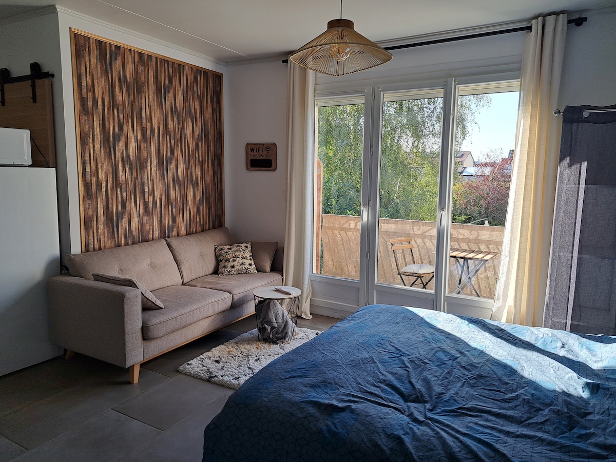Studio indépendant avec jardin et balcon, au calme