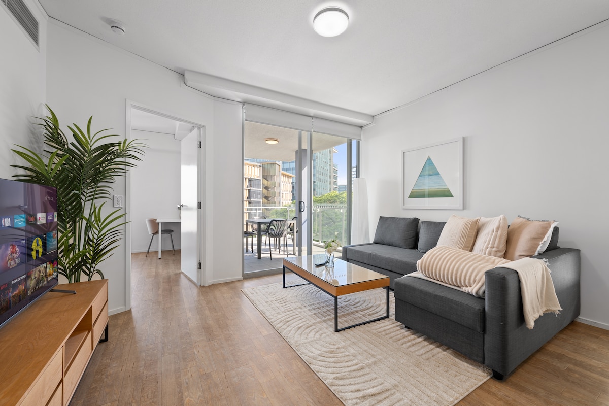 멋진 강변 전망과 식물원 정원 전망을 자랑하는 킹사이즈 침실 1개짜리 아파트는 단기 및 장기 숙박에 적합합니다. CBD 내부에 위치한 브리즈번의 스카이타워 건물은 모든 것에 가깝습니다! 아파트 기능은 다음과 같습니다. - 킹사이즈 침대와 빌트인 옷장이 있는 넓은 침실. 깨끗한 수건과 침구가 제공됩니다. - 거실 공간의 소파 베드 -중앙 냉방시설 - 셰프의 주방이 완비된 가스레인지 - 은밀한 세탁 공간 - 세탁기 및 건조기 - 커피 머신 -스마트 TV - 무료 와이파이