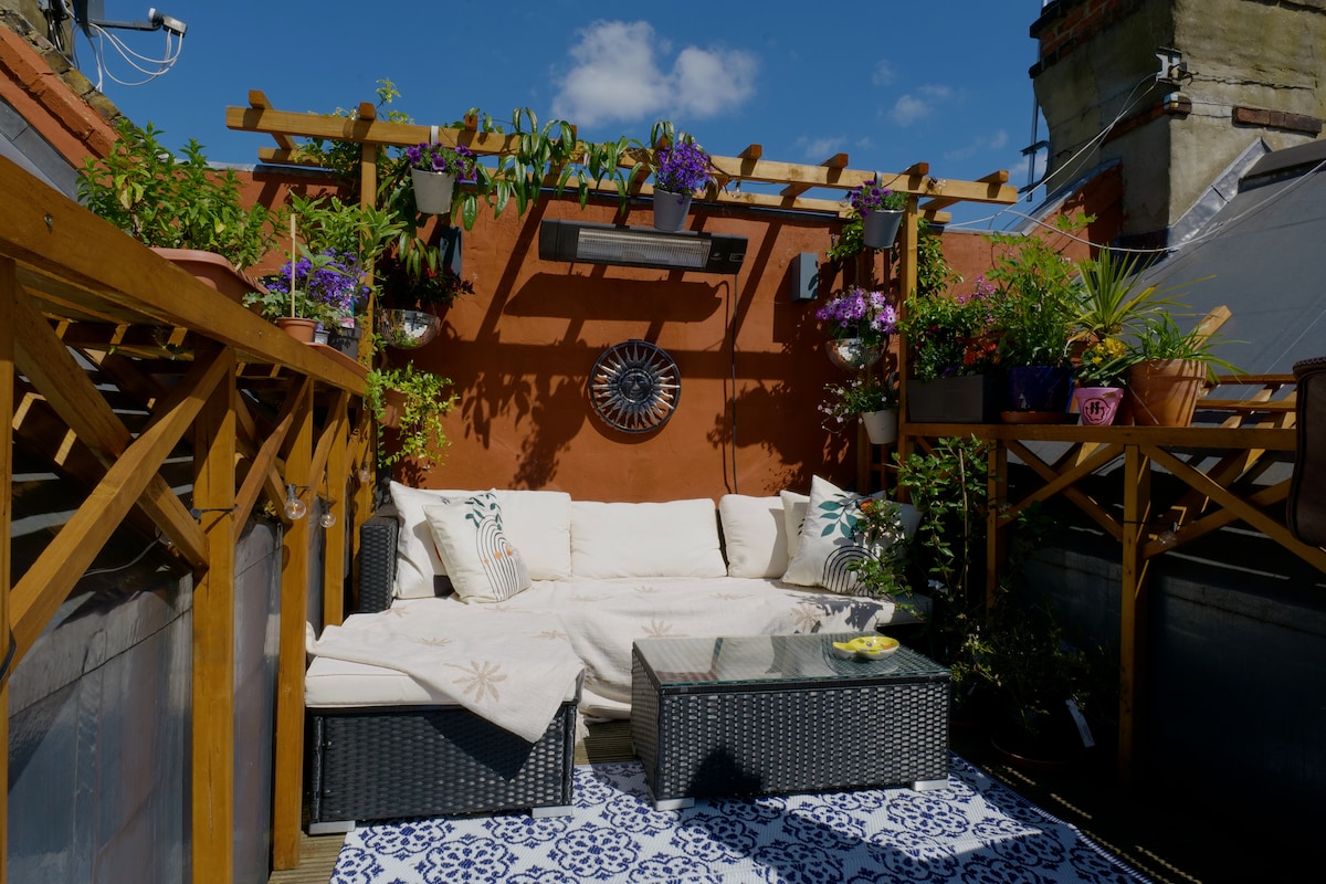 Accessed through a charming Victorian family home. This bright and intimate apartment offers a stylish retreat with a chic, monochromatic interior. Thoughtfully designed with impeccable attention to detail, the space features beautiful tiled finishes bathroom, graceful arched doorways, and characterful stripped wooden floors. Step outside to enjoy the sunny shared terrace — a perfect spot to relax and unwind in style.