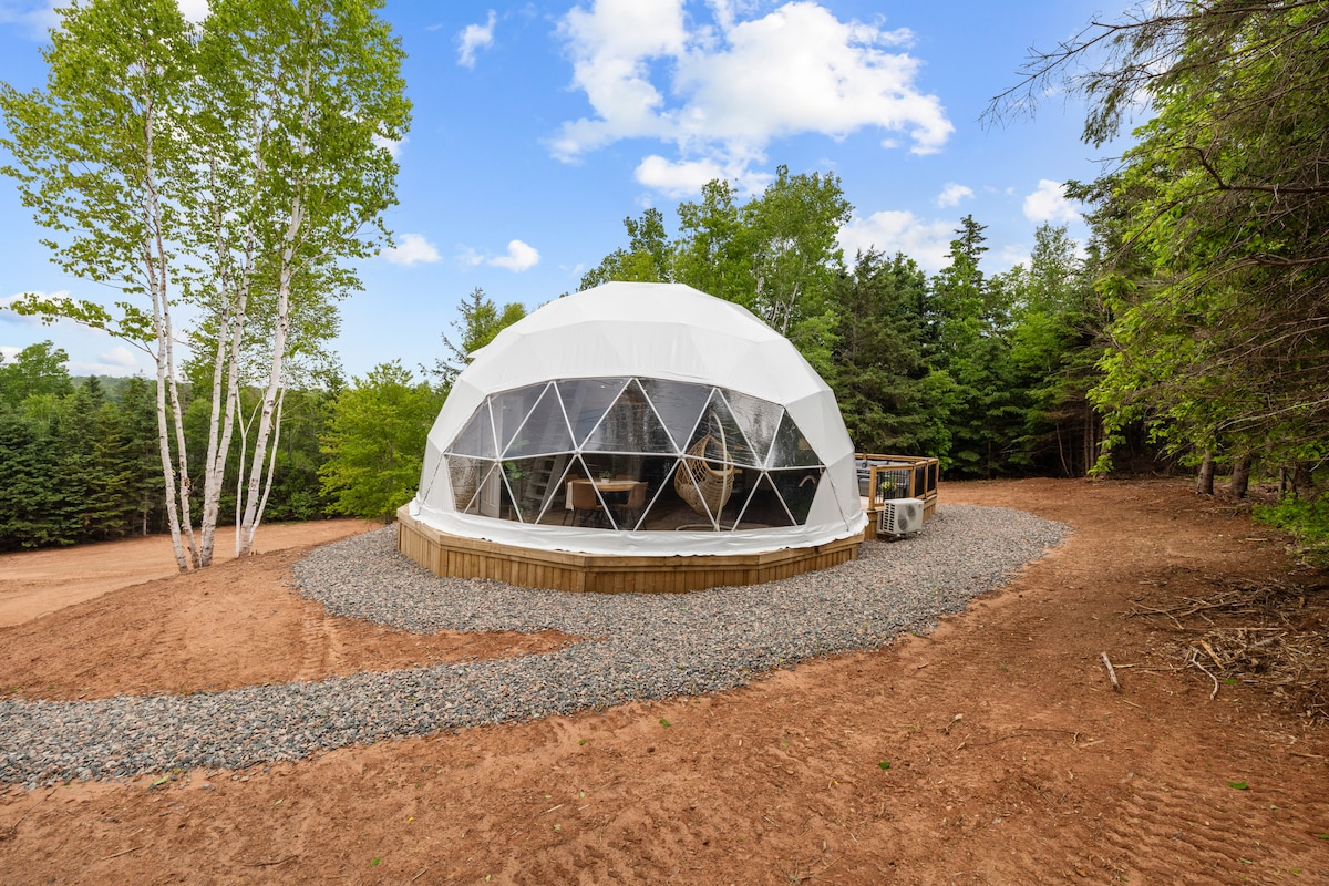 침대 2개, 완비된 주방, 전용 데크, 온수 욕조, 해먹이 있는 고급 돔하우스에서 아름다운 카디건강을 편안하게 즐기세요. 와이파이 및 스마트 TV가 포함되어 있습니다. 컨페더레이션 트레일, 주류 매장, 레스토랑, 골프 코스, 마트와 가깝습니다. 해변 접근, 조개 파헤치기 등(조개껍데기로 인해 물 신발 추천) 저녁 스모어를 즐길 수 있는 중앙 화덕. 주간 임대 시 현장 세탁 시설 이용 가능. PEI 관광 시설 허가 # 1300740