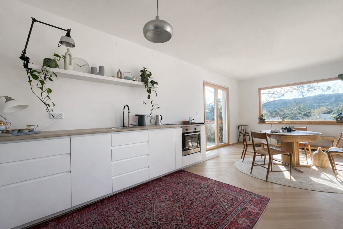 이 아파트는 자연과 가까이 접촉하여 편안한 숙박을 즐기기에 이상적인 장소입니다. 로프트는 빈 외곽의 녹색 주택가에 있는 오래된 집의 옥상에 위치해 있습니다. 녹지를 바라보는 커다란 창문과 고풍스러운 나무로 만든 인테리어가 독특하고 편안한 느낌을 줍니다. 아침에 일어나 커다란 창문을 통해 정원을 바라보는 것은 정말 값진 경험입니다. 넓은 테라스는 여름뿐만 아니라 봄과 가을에도 화창한 날을 즐기기에 완벽합니다.
