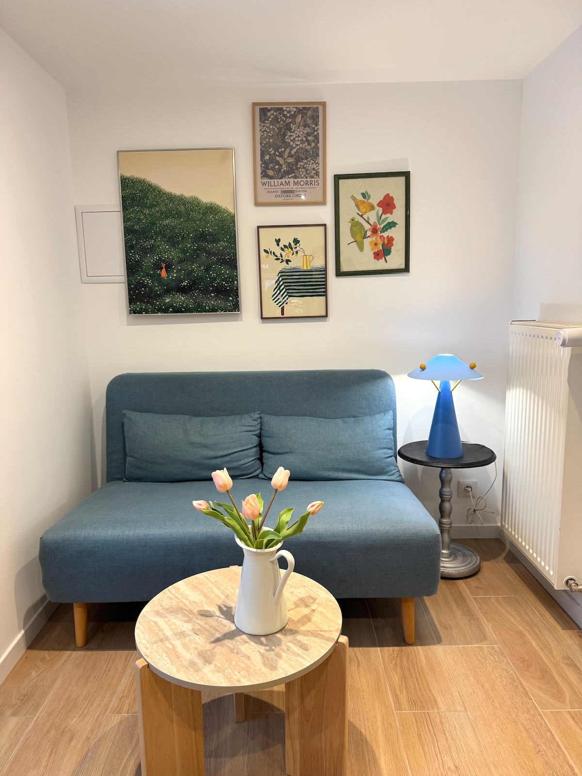 퐁레앙에 위치한 19㎡ 규모의 스튜디오로 1층에 위치해 있으며, 독립적인 출입구가 있습니다. 마당에 주차 공간이 있고, 딸이 작은 차를 주차하고 정원도 있습니다. 별도의 침실, 140 X 190cm 침대, 드레스룸. 싱크대, 세라믹 호브, 전자레인지, 냉장고, 센세오 커피 메이커, 주전자, TV가 구비된 주방. 세면대와 샤워기가 있는 욕실. 별도의 변기. 와이파이. 장애가 있는 게스트에게 적합하지 않습니다.