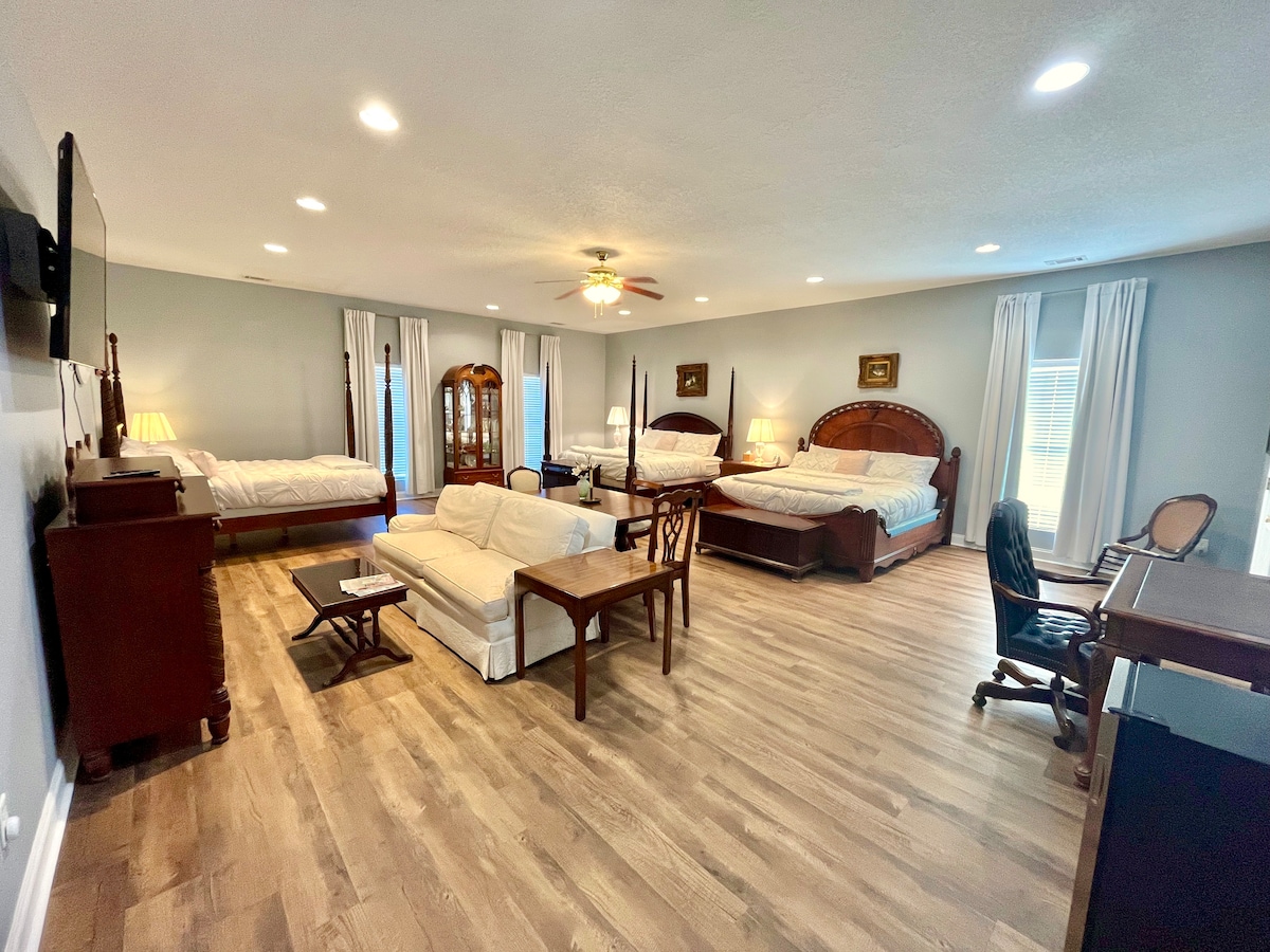 매디슨의 매너는 침실 5개(킹사이즈 침대 2개, 퀸사이즈 침대 3개), 수면용 소파, 디럭스 퀸사이즈 에어 매트리스 2개를 갖춘 고급스러운 숙박을 제공합니다! 멋진 수영장, 마사지 시설, 1층 ADA 침실/욕실을 즐겨보세요. 발, 손, 얼굴, 무릎 마사지기 등 편안한 휴식을 선사하는 기기를 즐겨보세요! 로프트는 홈시어터룸, 요가 스튜디오, 추가 수면 공간 등 다양한 기능을 갖추고 있습니다. 켄지스 코너, 여동생 숙소는 바로 뒤에 위치하고 있으며 이벤트를 위해 두 개의 숙소를 예약하고 싶은 가족에게 안성맞춤입니다!
