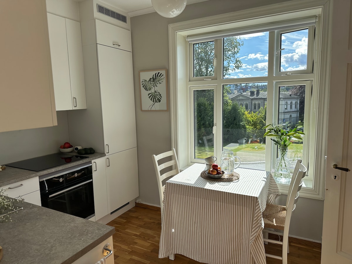 Frisk 50 kvm bolig i hjertet av Tønsberg – innredet med fokus på komfort. Her får du hotell følelsen hjemme, med gjennomtenkte detaljer, lune materialer og behagelig atmosfære. Fullt utstyrt kjøkken og lekre møbler. Gratis privat parkering inkludert til 1 bil. Med gåavstand til brygga, butikker, restauranter og kollektivtransport, får du både en eksklusiv og praktisk hverdag. Perfekt for deg som ønsker et stilfullt og praktisk hjem i sentrum