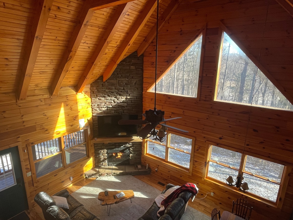 Escape into pure relaxation at "The Haven", an upscale 3-bedroom cabin with a large outdoor seating area, grill, fire pit, and Bullfrog hot tub on a wraparound deck. Inside, enjoy home comforts with upscale enhancements, a fully stocked kitchen, exceptional seating, 65" OLED TV.. The bedrooms offer beautiful views and luxurious, name brand beds. Ideal for a romantic getaway, family vacation or hunting trip. Book now!