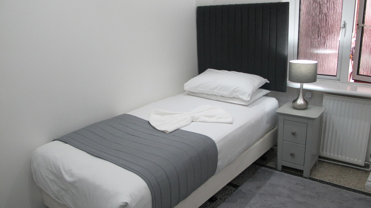 런던 골더스 그린 한복판에 위치한 새로 단장하고 넓은 (로프트) 2층 호텔 객실. 센트럴 런던으로 가는 모든 주요 교통편과 고급 레스토랑, 바, 카페, 상점을 포함한 편의시설에 가깝습니다. 더블룸 (킹사이즈 침대) 에는 높은 천장, 현대적인 바닥, 새로운 욕실, USB (c) 플러그, TV, 냉장고가 있습니다. 출장이나 레저 여행을 떠나는 커플을 위한 완벽한 호텔 객실입니다. 무료주차 (예약필수). 스마트 TV, 무료 초고속 와이파이, 조용한 위치.