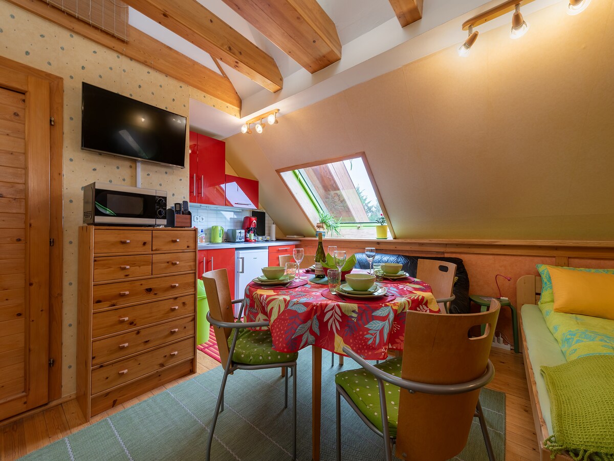 세체니 목욕탕 근처에 위치한 에어컨이 설치된 어린이 친화적인 스튜디오