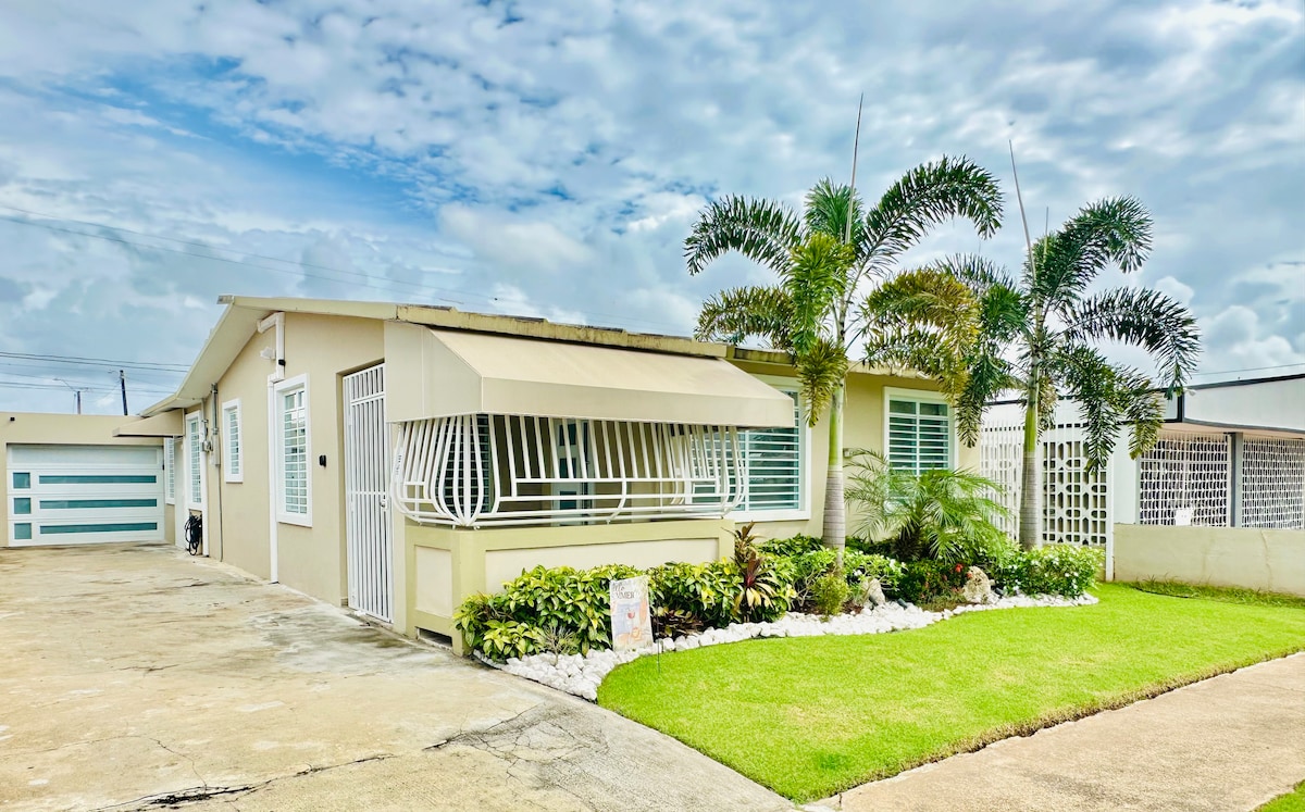 완전히 개조되고 가구가 완비된 아늑한 숙소. 국제 SJU 공항에서 25분 거리에 있으며 고속도로 5에서 3분 거리에 있습니다. 집 전체에 새로운 에어컨 장치가 설치되어 있습니다. 테슬라 배터리가 있는 태양광 전원이라 전기가 안 되는 것에 대해 걱정하지 않아도 됩니다. 무료 와이파이, 기본 케이블, 스마트 TV(넷플릭스 및 훌루) 전기 차고 문이 있는 소형 차량 차고 3개가 있는 완비된 주방. 침대 4개도 있습니다. 렌터카를 이용하세요. 대부분입니다.