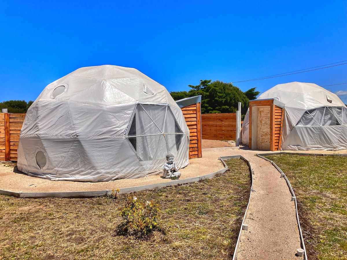 sumérgete en una experiencia única en nuestro domo, diseñados para ofrecer comodidad y serenidad a solo pasos de la playa Santa isabel chapamadal ,cerca de mar del plata .Cada domo cuenta con la opción de dos individuales o una cama de matrimonio y un Bano completo ideal para un descanso pleno .Sin cocina pero rodeado de servicios y gastronomía local , el espacio invita a desconectar y vivir el entorno natural en un recinto privado y seguro . Ven a disfrutar de un lugar que respira paz y armonía