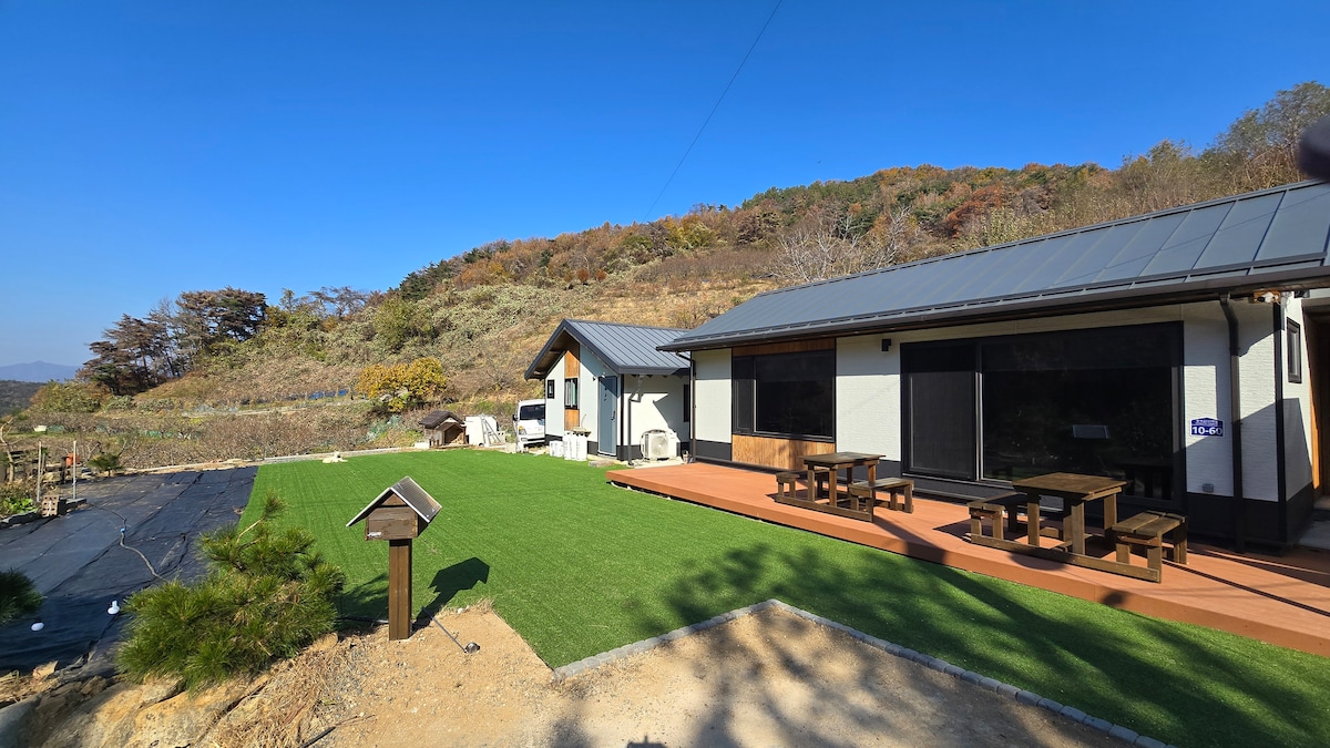 현곡휴(休)독채,건물2(본채+사랑채),방4,대가족,모임,바베큐,불멍,촌캉스,시골뷰@연박할인