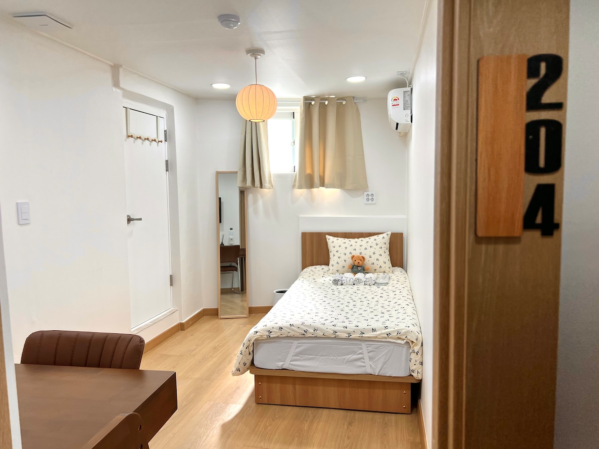 [단독 욕실 | 지하철 도보 6분] 맛집 카페 가득한 상권 속 깔끔하고 아늑한 숙소*204