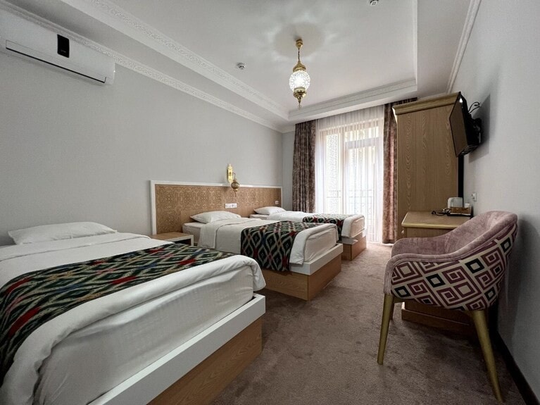 고대 역사 도시 부카라에 위치한 호텔입니다. Native Terracce. 주소: Bukhara, Kuyi Honako 30. 참조: 도로 옆 성채 ‘’ 아크 ''. 편안한 객실 12개 (더블 6, 트윈 5, 4인실 1) 매우 경쟁력 있는 가격. 위성 및 케이블 TV. 에어컨 시스템. 무제한 와이파이. 리셉션 연중무휴. 전문적이고 숙련된 직원. 객실 매일 청소 맛있는 조식. 주차 가능 호텔 근처의 모스크. 우리 모두의 역사적 명소입니다.