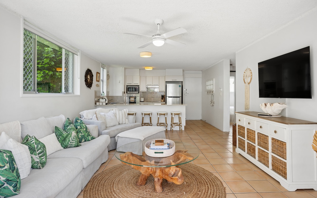 유명한 벌리 파빌리온 (Burleigh Pavilion) 과 릭 쇼어스 (Rick Shores) 바로 건너편에 있는 나무 사이에 자리한 밝고 바람이 잘 통하는 아파트를 경험해보세요. 벌리 비치 (Burleigh Beach) 가 바로 앞에 있어 벌리 힐 (Burleigh Hill) 의 피크닉 장소와 벌리 헤드랜즈 (Burleigh Headlands) 의 경치 좋은 하이킹을 즐겨보세요. 새롭게 리모델링하고 세심하게 꾸며진 이 아파트는 넓은 킹사이즈 침대, 아늑한 퀸사이즈 침대, 스마트 TV, 잊을 수 없는 벌리 헤즈 휴가를 위한 모든 필수품을 갖추고 있습니다.
