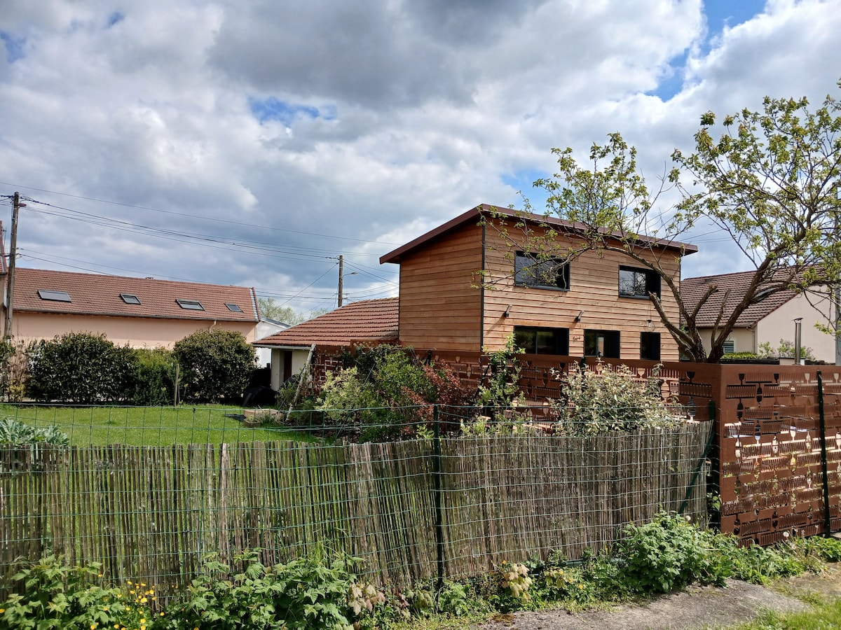 Jolie maisonnette indépendante au coeur de notre jardin arboré pour un séjour au calme. Proximité du centre ville de Nancy (15min en voiture ou en train). Pour les sportifs et flaneurs, à 2min des boucles de la Moselle (85km de pistes cyclables), de ballades en forêt ou autour de nombreux petits plans d'eaux. Petite précision, il y a un accès à internet dans le logement mais celui ci n est accessible que par une connexion ethernet (câble fourni).
