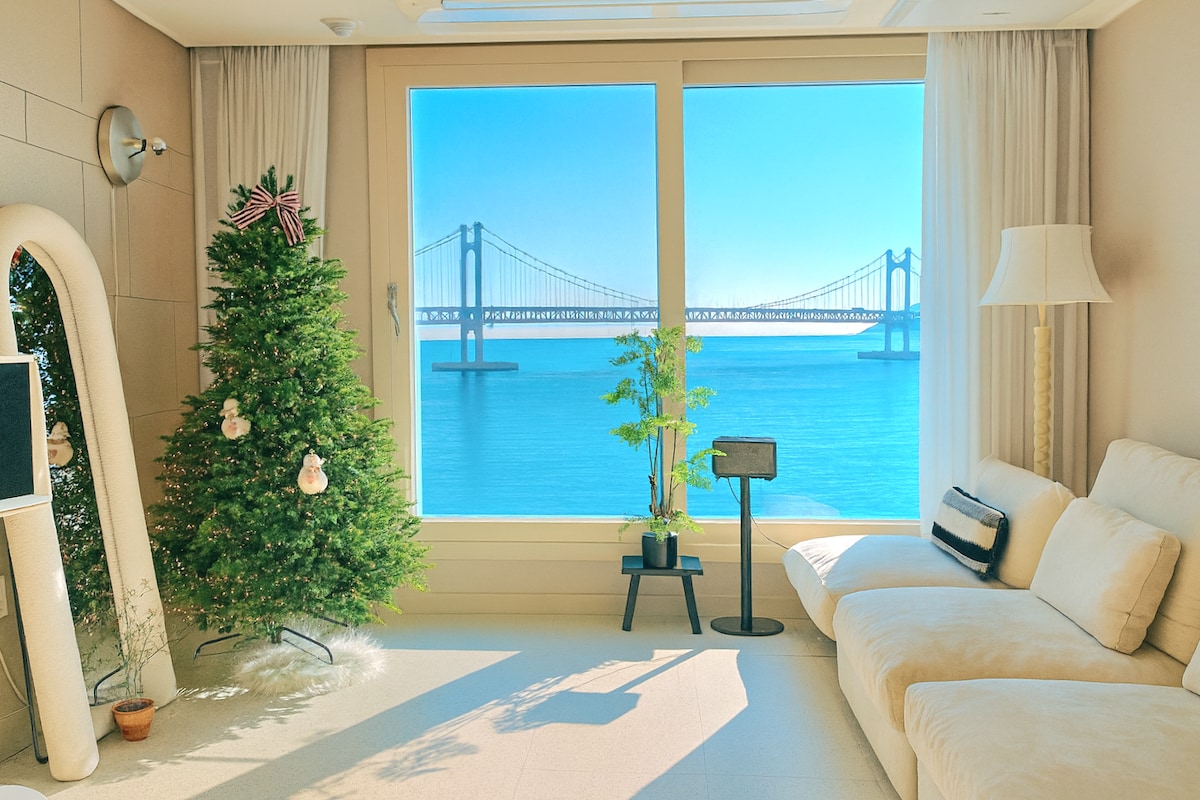 ❤️최근 방 확장 공사를 하여 침실 2개, 거실 1개의 구조로 퀸 침대 1개, 더블 침대 2개로 여유있게 주무실수 있어요:) 안리빌라(Anri villa)를 찾아주셔서 감사합니다. 🎇초근접 광안대교를 볼 수 있는 환상적인 브릿지 뷰(full ocean view) 💕거실과 침실 모두에서 볼 수 있는 힐링 풀오션뷰와 광안대교뷰 "인생샷을 남겨보세요"💖 신축 20평형대 프리미엄급 숙소로👍 매일 침구류 세탁과 살균소독 및 청소, 청결을 최우선으로 합니다.😉🎇 🍃숙소 건물내 지하1~3층 무료 주차장(자주식) 🍃스마트TV로 넷플릭스 유튜브 등을 즐겨보세요. 🍃바로 옆 밀락더마켓, 해운대 차로 10분 거리 🍃1층 카페, 와인샵 등 편의시설이 있어요. 🍃🍃 안티스트레스 티(유기농)와 핸드드립 커피, 인센스가 준비되어 있습니다. 마음이 복잡했다면 따뜻한 차와 향과 함께 조금은 해소되길 바라요.