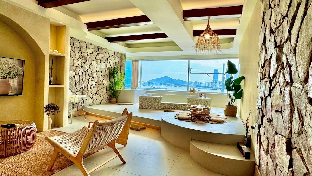 부산역에서 도보 5분 거리, 캐리어를 끌고 이동할 수 있는 하늘다리로 연결된 쾌적한 공간입니다. 넓은 거실에서는 탁 트인 바다와 도시의 전망을 동시에 감상할 수 있으며, 품격 있는 휴식을 선사하는 매력적인 숙소입니다. @stay8usanhang은 제3의 공간으로 편안한 휴식과 영감을 드리기 위해 음악/향기/분위기/인테리어/침구까지 섬세하게 준비된 스테이입니다. - 부산역과 연결된 구름다리 (도보 5분 거리) - 슈퍼킹 침대 1개, 슈퍼싱글 침대 3개 - 바다 전망의 욕조 (스파 가능) - 풀옵션 / 가족 단위 여행객에게 추천 - 넷플릭스, 유튜브, OTT, 공중파 채널 시청 가능한 50인치 대형 TV - Bang & Olufsen 스피커 및 욕조, 침실 스피커 완비 편안함과 고급스러움을 모두 갖춘 이곳에서 부산의 매력을 만끽해 보세요.