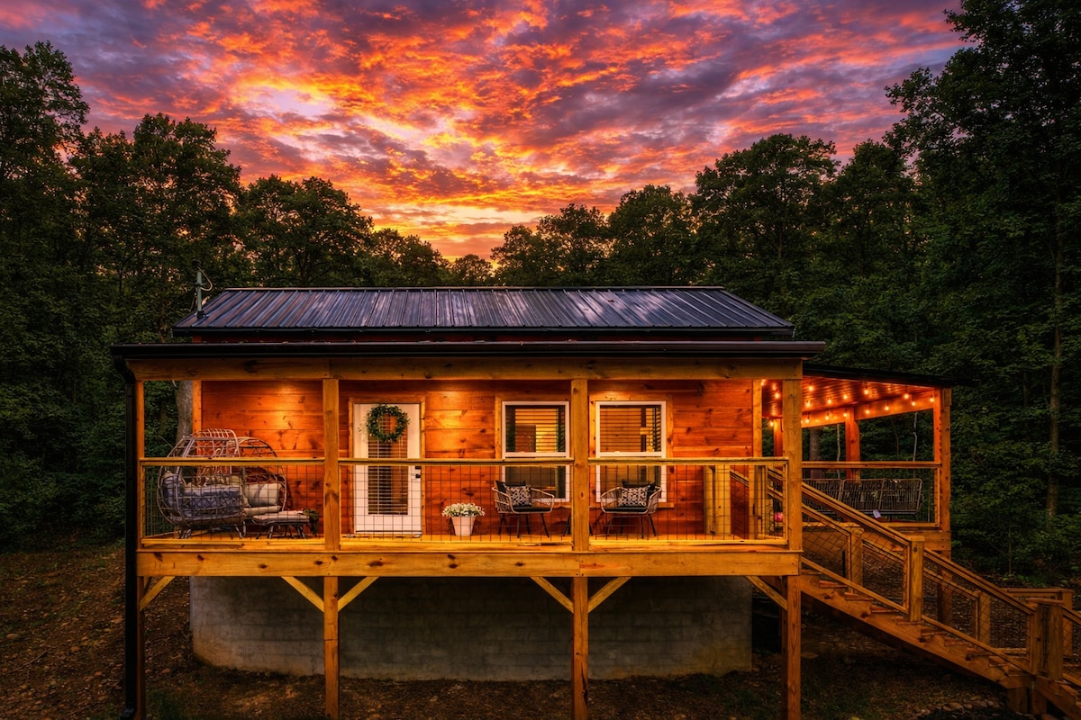 ☆NEW studio cabin☆ Professionally decorated with amazing amenities. ☆Hot Tub ☆Fire Pit ☆Charcoal Grill ☆Smart TV ☆King Bed ☆Electric Fireplace ☆Wi-Fi The cabin's location offers easy access to the Smokies, Gatlinburg, Pigeon Forge & Dollywood, making it perfect for adventurous couples or those seeking a peaceful escape. With thoughtful amenities you’ll have everything you need for a peaceful & relaxing getaway for two. Book now and make unforgettable memories with the ones you love most!