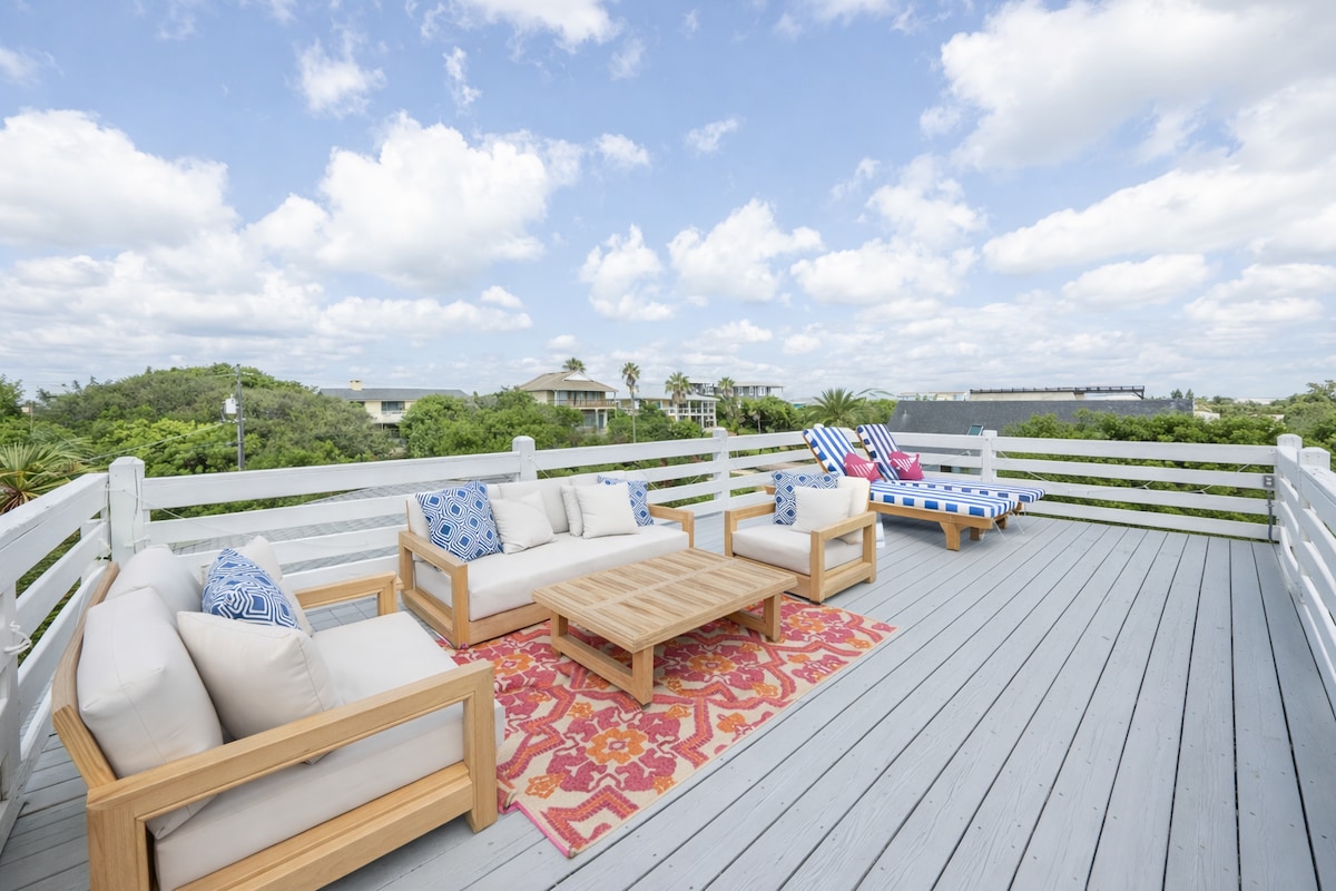 🏝️ 2026년 봄·여름 시즌에 게스트를 맞이할 내 전용 해변 주택! 해변, 레스토랑, 아케이드, 커피 및 요가까지 도보로 이동할 수 있습니다. 유서 깊은 세인트 어거스틴 시내까지 차로 10분 거리입니다. 울타리가 있는 마당, 덮개가 있는 데크, 그릴, 화덕 + 고급 야외 샤워 시설. 침대 3개/욕실 2개, 6명 수용. 어린이/반려동물 친화적. 현대식 주방. 원격 업무 공간. 65인치 TV. 오리지널 닌텐도 및 650개 이상의 게임. 자전거 2대, 의자 2개, 해변 카트. 무료 커피. 평화롭고 조용한 거리에 있지만 모든 것에 가깝습니다. 전문 호스트가 제공하는 항상 5성급 서비스! ✨
