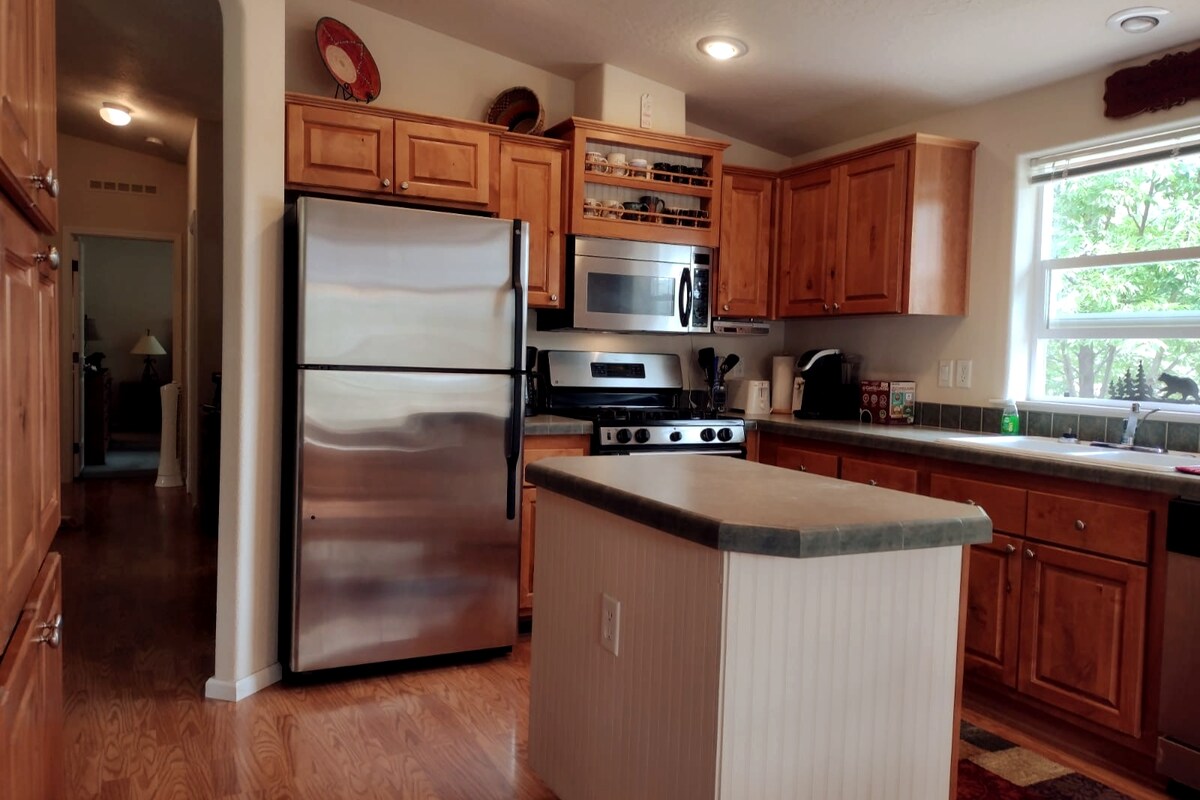 넓고 평온한 숙소에 머물면서 걱정과 근심을 잊어보세요. 이 침실 3개 욕실 2개 숙소는 크레이터 오브 더 문과 매케이 저수지 근처에 있습니다. 지붕이 있는 베란다가 있는 넓은 뒷마당. 현재 킹 사이즈 매트리스 1개와 퀸 사이즈 매트리스 1개가 있습니다. 세 번째 방은 아늑한 체이스 라운지가 있는 영화 룸으로 사용됩니다.