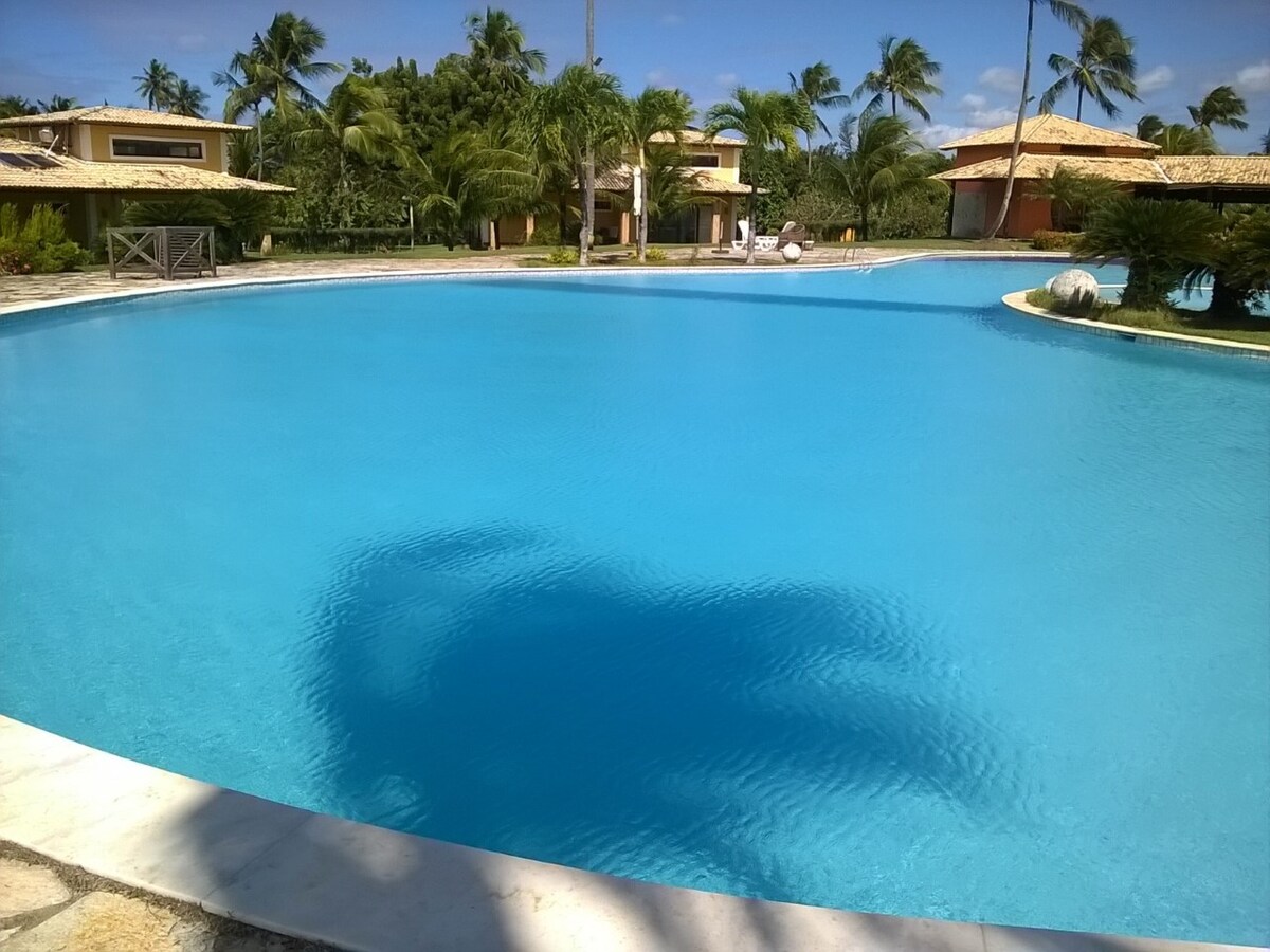 Chalé em condomínio fechado, próximo a praia, fica à 100m. Duplex dispõe de 3 suítes, 1 quarto, todos com ar-condicionado, 1 banheiro social, sala ampla, cozinha completa, área de serviço e varanda com churrasqueira. Ao lado do chalé passa um rio, belíssima paissagem, deixando o chalé com um clima muito aconchegante.