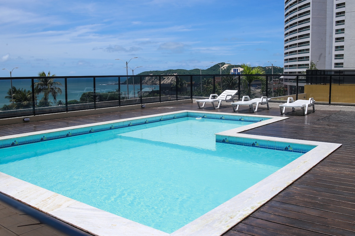 폰타 네그라 비치 최고의 위치에 있는 가구가 완비된 플랫입니다. 최고의 레스토랑과 바 근처에 있습니다. 스토브, 오븐, 전자레인지, 음료 냉장고가 완비된 주방. 에어컨, 스마트 TV, 퀸사이즈 침대, 매우 편안합니다. 온수, 스코틀랜드식 샤워 시설, 수직 마사지, 휴식을 위한 파란색 조명이 있는 욕실. 서핑 보드 2개. 24시간 컨시어지와 주차 공간.