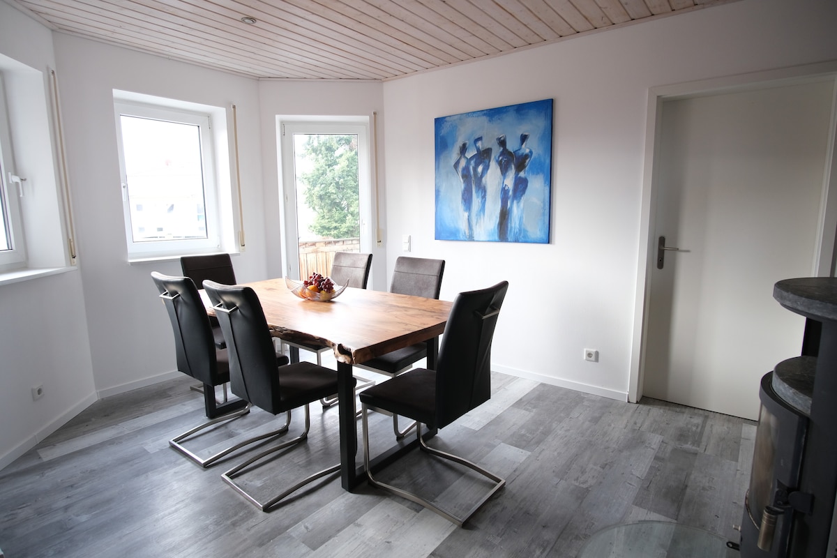 플레이모빌 펀파크(9분)와 카돌츠부르크 성 근처의 새롭게 리모델링한 전원주택 스타일의 아파트. 뉘른베르크 박람회장까지 자동차로 단 30분 거리입니다. 저희 아파트에는 침실 2개가 있습니다. 하나는 1.80 x 2.00m 더블 베드가 있고 다른 하나는 고품질 매트리스가 있는 2개의 침대로 필요에 따라 변환할 수 있는 침대가 있습니다. 가족을 위해 요청 시 유아용 침대도 준비되어 있습니다. 샤워기가 있는 욕실과 별도의 화장실이 있습니다. 또한 잘 갖추어진 주방이 있어 직접 요리를 할 수 있습니다.