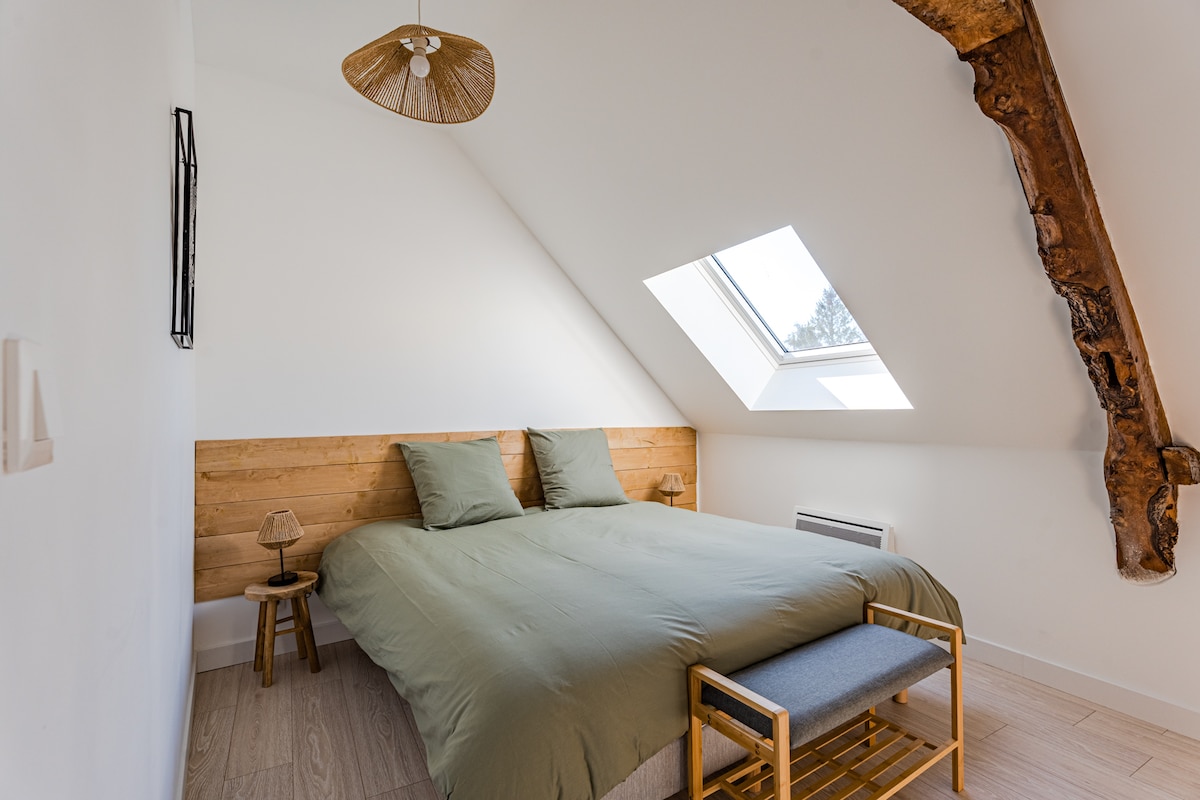 이상적인 위치에 있는 전원주택으로, 바다에서 1km 거리에 있습니다. 시골길 끝에 위치한 랄로의 전원주택은 오래된 농가의 전형적인 노먼 환경에서 여러분을 맞이할 것입니다. 독립적인 집, 밀폐된 정원, 반대가 아닌 절대적인 차분함. 2020년에 완전히 개조된 전원주택으로, 독립된 침실 4개, 아름다운 샤워실 2개, 식사 공간과 주방이 어우러진 매우 큰 거실의 혜택을 누릴 수 있습니다. 최소 3박 이상 예약 가능.
