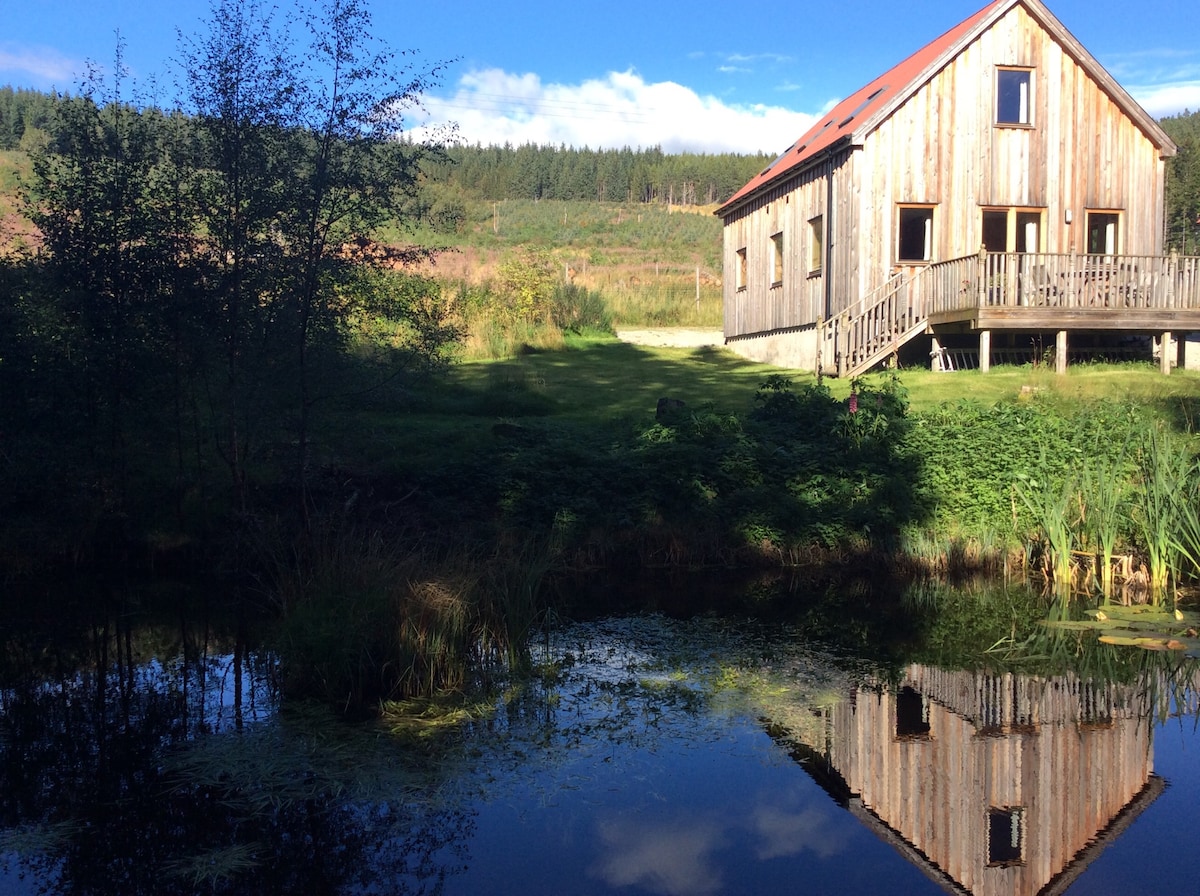 멋진 호숫가에 위치한 현대적이고 넓은 나무 산장입니다. 라운지와 마스터 베드룸의 파티오 문은 가구가 갖춰진 넓은 데크로 열립니다. 거기에서 후퍼 백조, 캐나다 거위, 굴 캐처, 오리, 사슴과 같은 야생동물을 볼 수 있으며, 스키할리온 산이 멀리 보입니다. 3개의 큰 침실(슈퍼 킹사이즈 침대가 있는 마스터 침실)에는 각각 욕실이 딸려 있습니다. 퍼스셔의 아름다운 중심지와 아름다운 마을 애버펠디, 피틀로크리, 켄모어를 둘러보기 위한 목가적인 장소입니다.