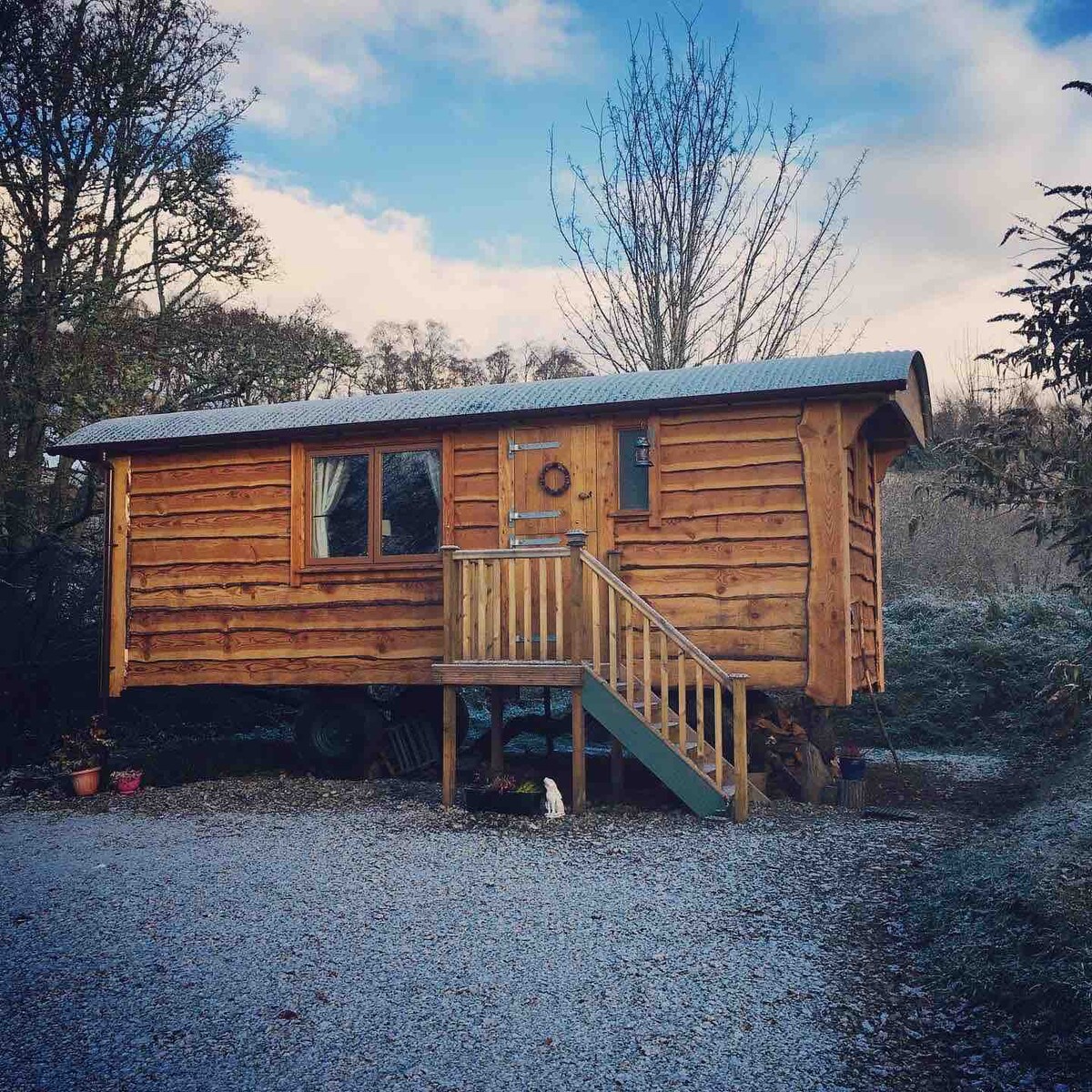 Off-grid shepherds hut with wood fired hot tub
