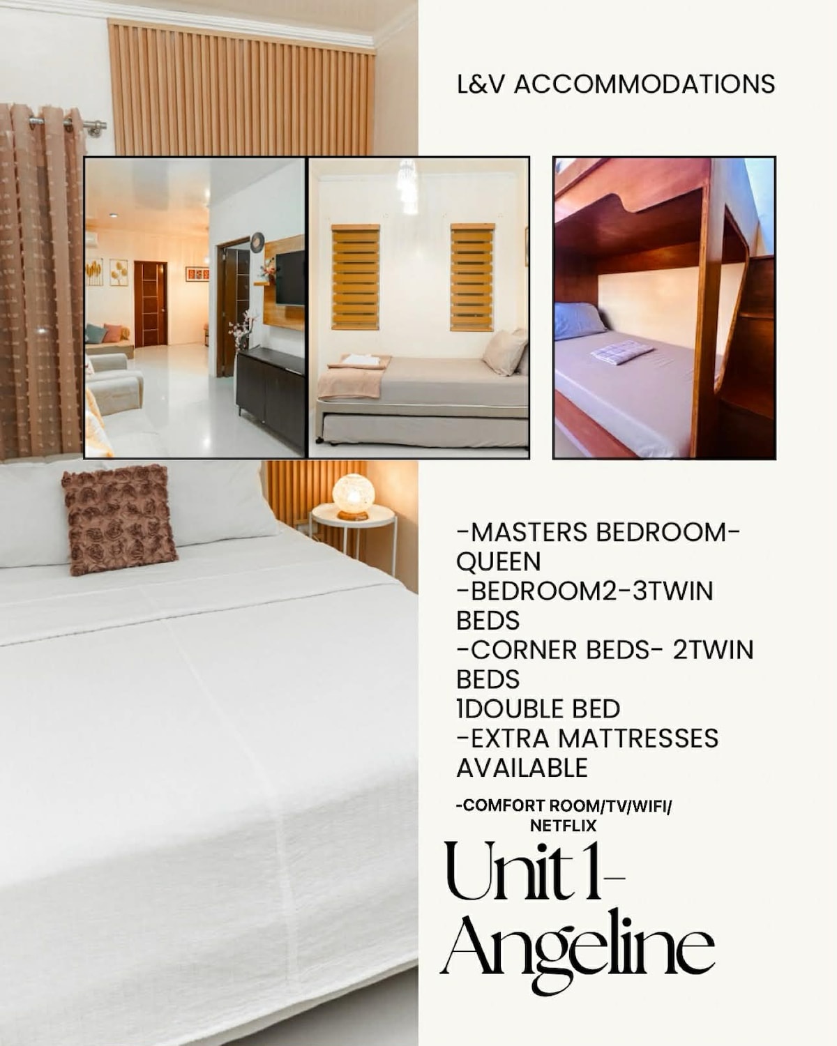 친구나 가족과 함께 넓고 저렴한 숙소를 경험해보세요. 각 유닛은 최대 6명까지 수용할 수 있으며 전용 욕실, 식사 공간, 거실을 갖추고 있습니다. 무료 실내 주차 공간과 넓은 로비 공간을 갖추고 있습니다. SMX, MOA 아레나까지 1.6마일 또는 11분, City of Dreams 및 Apqprox까지 약 0.7마일 또는 5분, 공항 터미널까지 2마일 또는 15분. 1 ~ 2인용 우미트도 준비되어 있습니다. 언제든 문의 부탁드립니다.