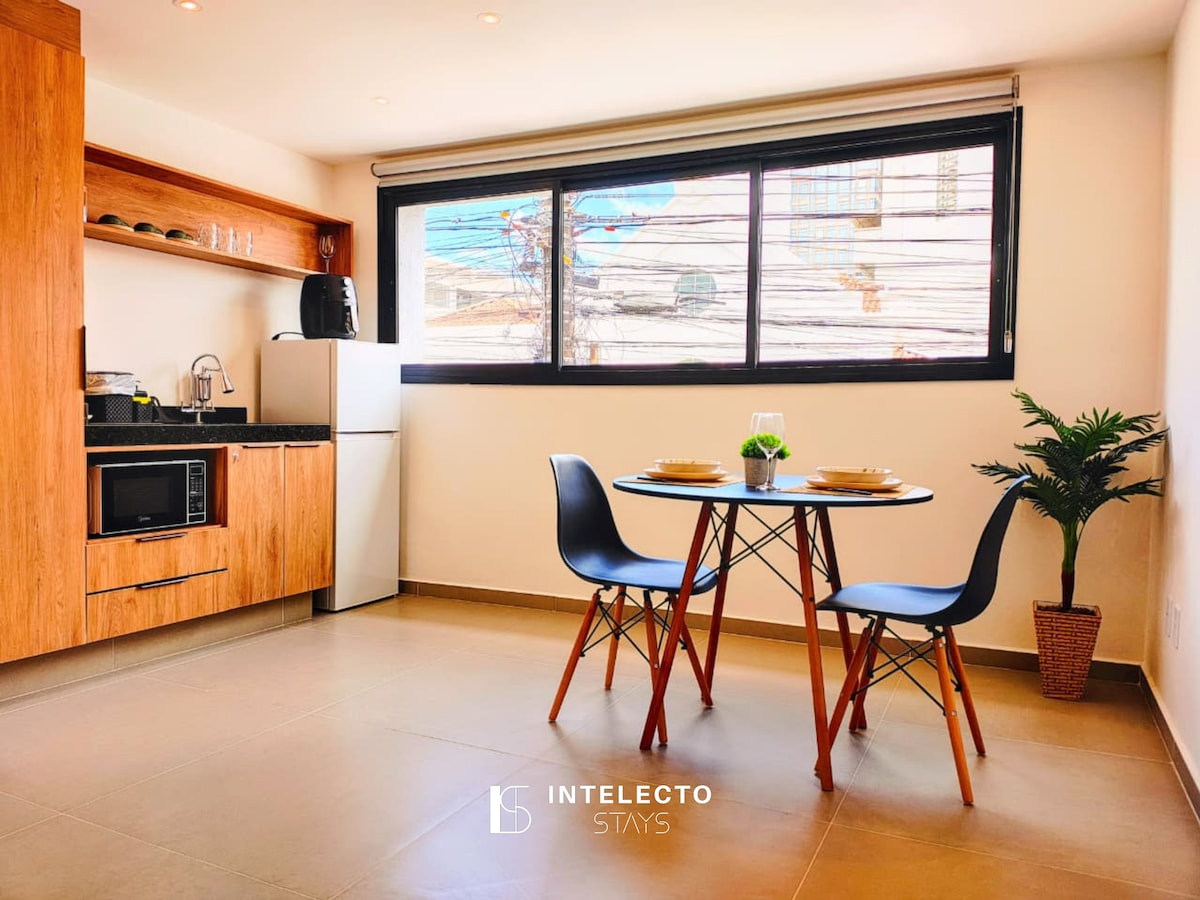 Apê excepcional curtir tudo que há de melhor em Poços. Seja algumas noites ou por meses, nosso studio é o ideal. Prédio no coração da cidade, perto de tudo, com portaria virtual 24h, todo mobiliado e equipado, muito funcional e confortável. Self check-in fácil, internet ótima, ar condicionado, Smart TV, kit para café, convenio com estacionamento próximo para ter desconto ao deixar seu veiculo. Fornecemos toalha, roupa de cama e coberta
