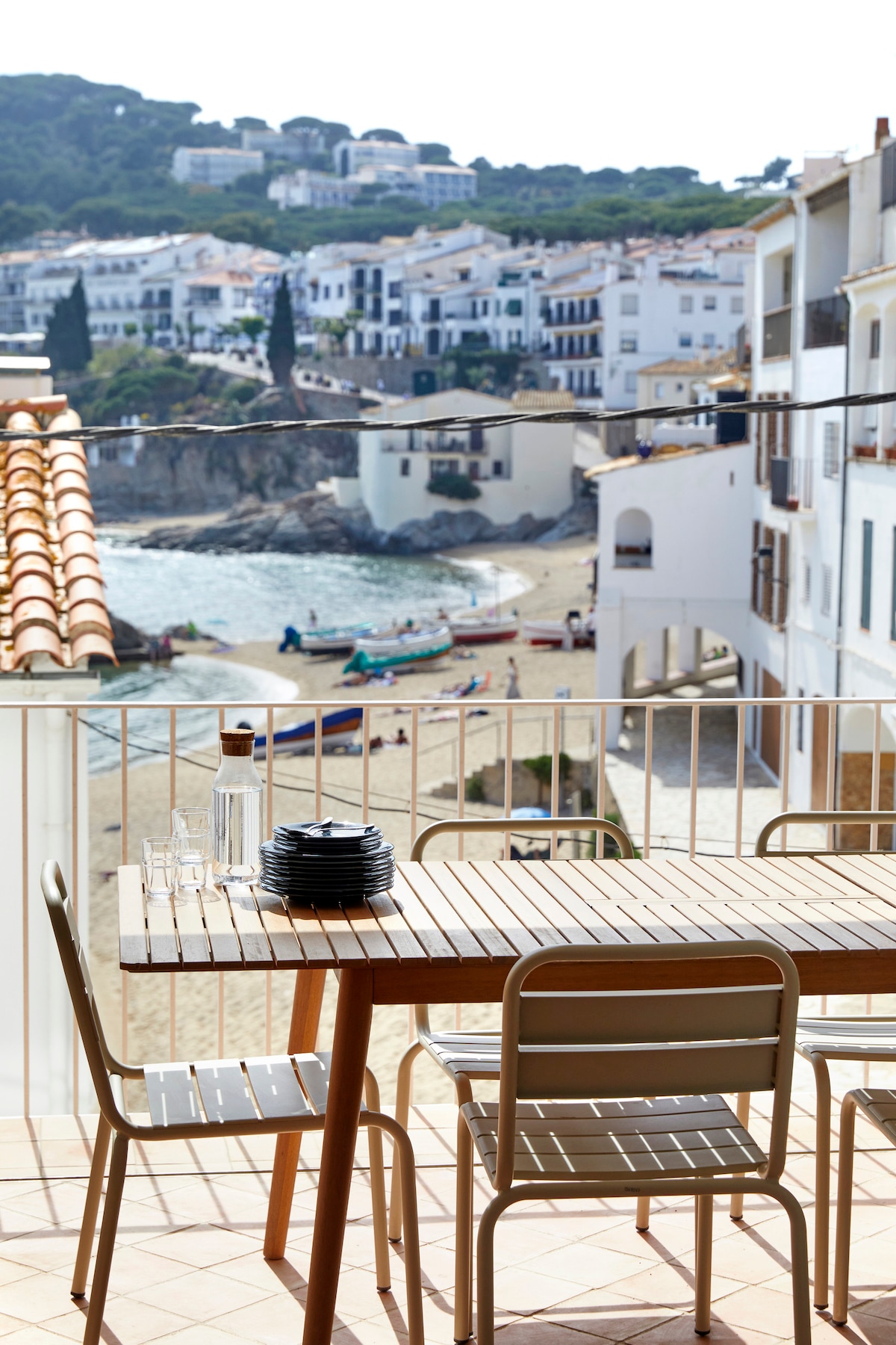 In a privileged location, overlooking the iconic Canadell beach and stroll of Calella de Palafrugell, a mixture of classic fisherman house and stylish renovated apartment with airco. It offers 3 beautiful bedrooms, modern bathroom and well equipped kitchen. In addition, building has one of the largest rooftop terraces of Calella de Palafrugell, to enjoy the beautiful sunsets. Fantastic beach, best restaurants of the area (Tragamar, Puerto Limon), bakery, shops are all just few steps away.