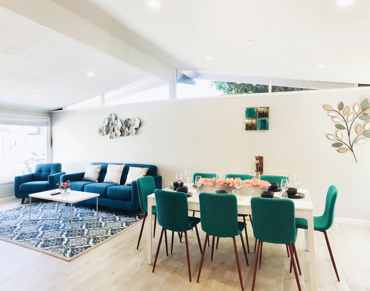 Unwind in style in Silicon Valley's heart. Our backyard offers a peaceful retreat, complete with fruit-bearing trees and ambient lighting. Modern comforts await indoors, from brand-new furnishings, high speed internet, an executive office and a large dining. Your culinary adventures are supported by a well-stocked kitchen and our complimentary treats. With ADT protection and generous parking, convenience is a given. All set in a serene neighborhood, minutes away from tech hubs and entertainment.