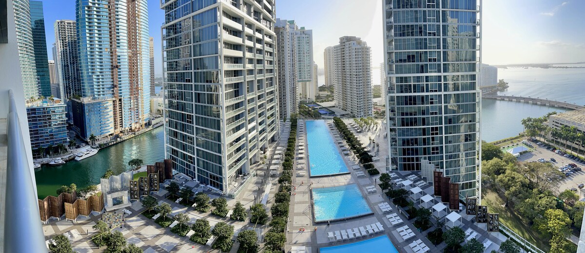BRICKELL IN STYLE!! Upscale condo on the 42nd Floor. Astonishing view, tasteful décor, penthouse style. This is the condo you're looking for. Ideally suited for families, business executives, and leisure seekers alike. Walk to Brickell City Centre (Mall) with upscale shops and restaurants. CVS and 7-11 are steps away where you can get all essentials. 10 minute Uber ride to Wynwood, South Beach and Design District. Featuring a pool, gym, and a game room. This is your spot. Welcome to Miami!