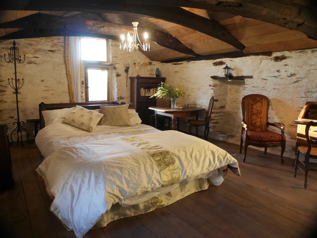 A blissfully peaceful and beautiful retreat. The renovated cottage is a small 2 storey house perfect for 2 people, in a magnificent estate of 94 acres of chestnut forest, sublime experience for nature lovers, who want to get away from the hustle and bustle, wonderful walking trails, magnificent views. Natural small pool on the property but there is a sublime swimming spot at 9km. Bedroom and wood heater upstairs, bathroom, separate toilet and open kitchen downstairs. Private terrace.