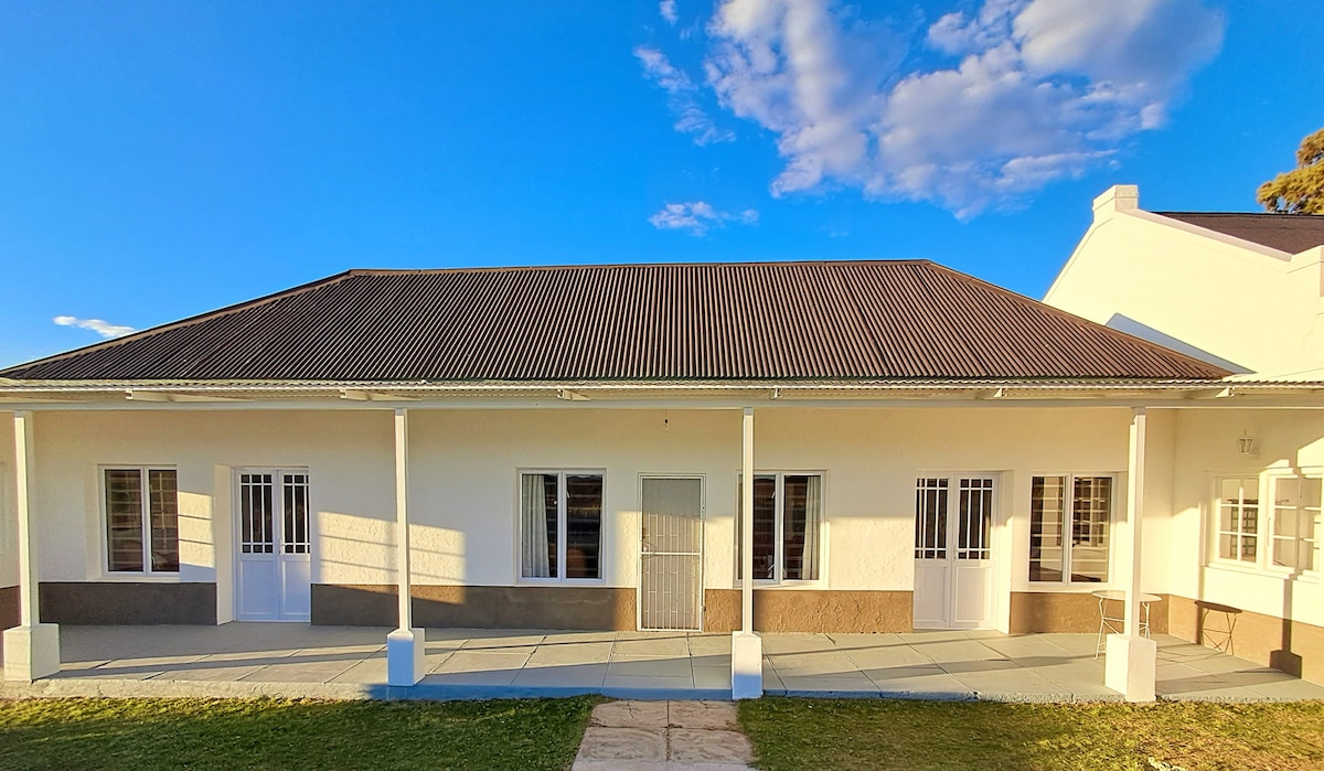 친구 및 가족이 머물거나 넓은 카루를 둘러보며 며칠을 보낼 수 있는 중심부에 위치한 숙소입니다. 이 전원주택에는 욕실이 있는 대형 침실 2개, 편안한 거실, 시설이 갖춰진 주방이 있습니다. 잘 관리된 정원은 다리를 뻗고 카루 하늘을 감상할 수 있는 공간을 제공합니다. 안전한 노상 주차장도 마련되어 있으므로 하룻밤을 위해 모든 것을 꺼낼 필요는 없지만 2박을 기대하면 좋겠습니다. 태양광 및 와이파이도 제공합니다. 곧 뵙겠습니다....